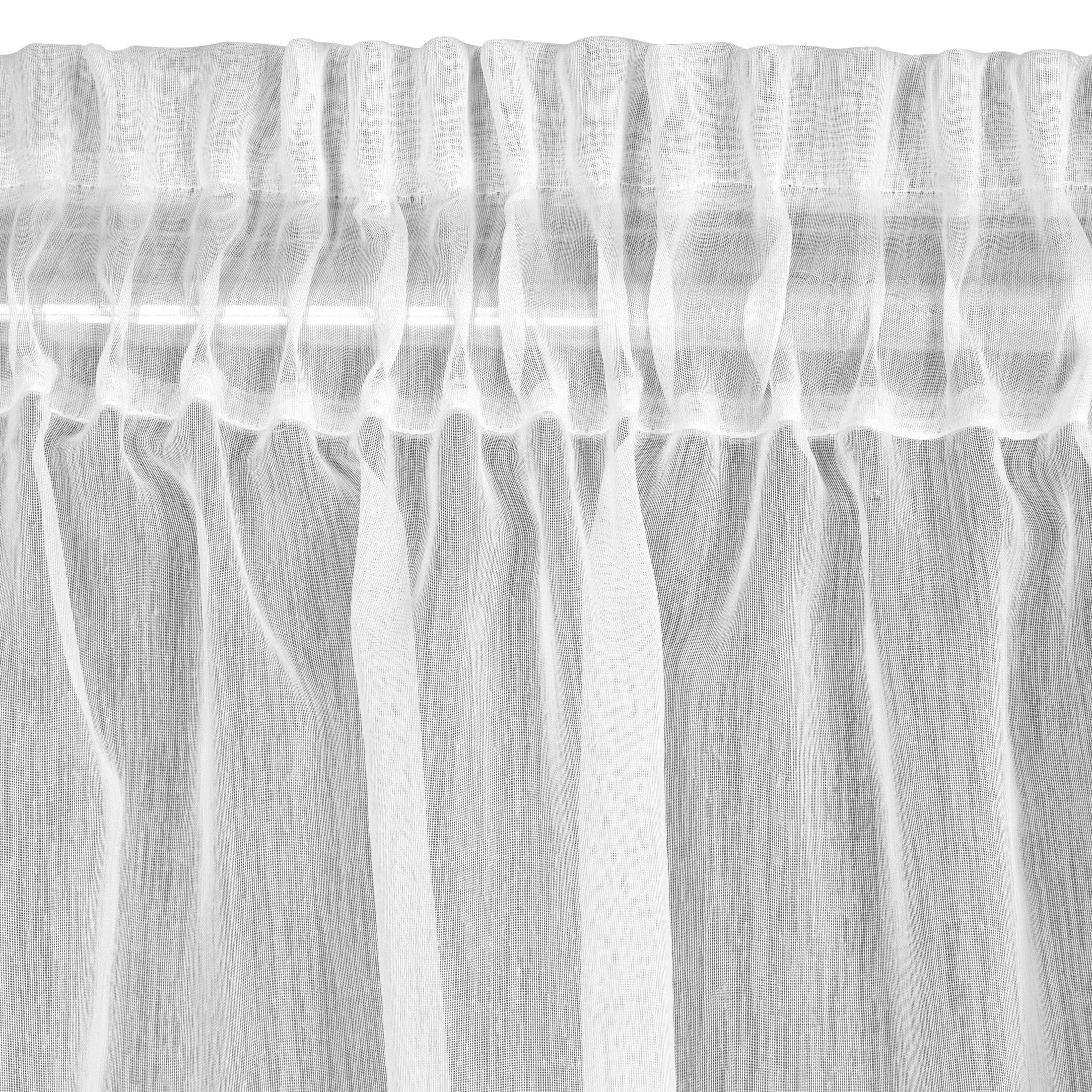 Větší záclona Rebecca, bílá, řasící páska, svislý vzor deštíku, velikost 350x250cm, lze zkrátit