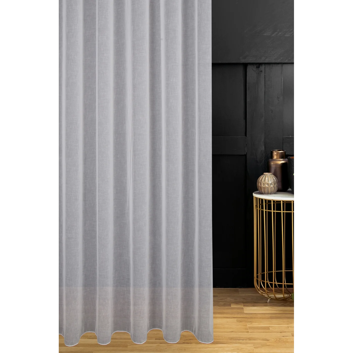 Záclona je ušita jako kompletní, dokončená, připravená ihned k zavěšení