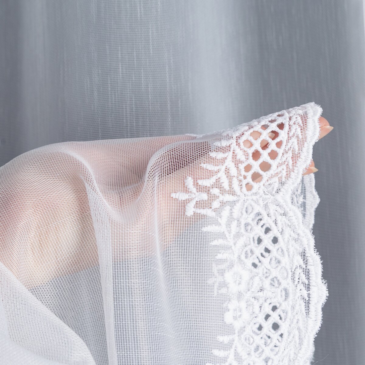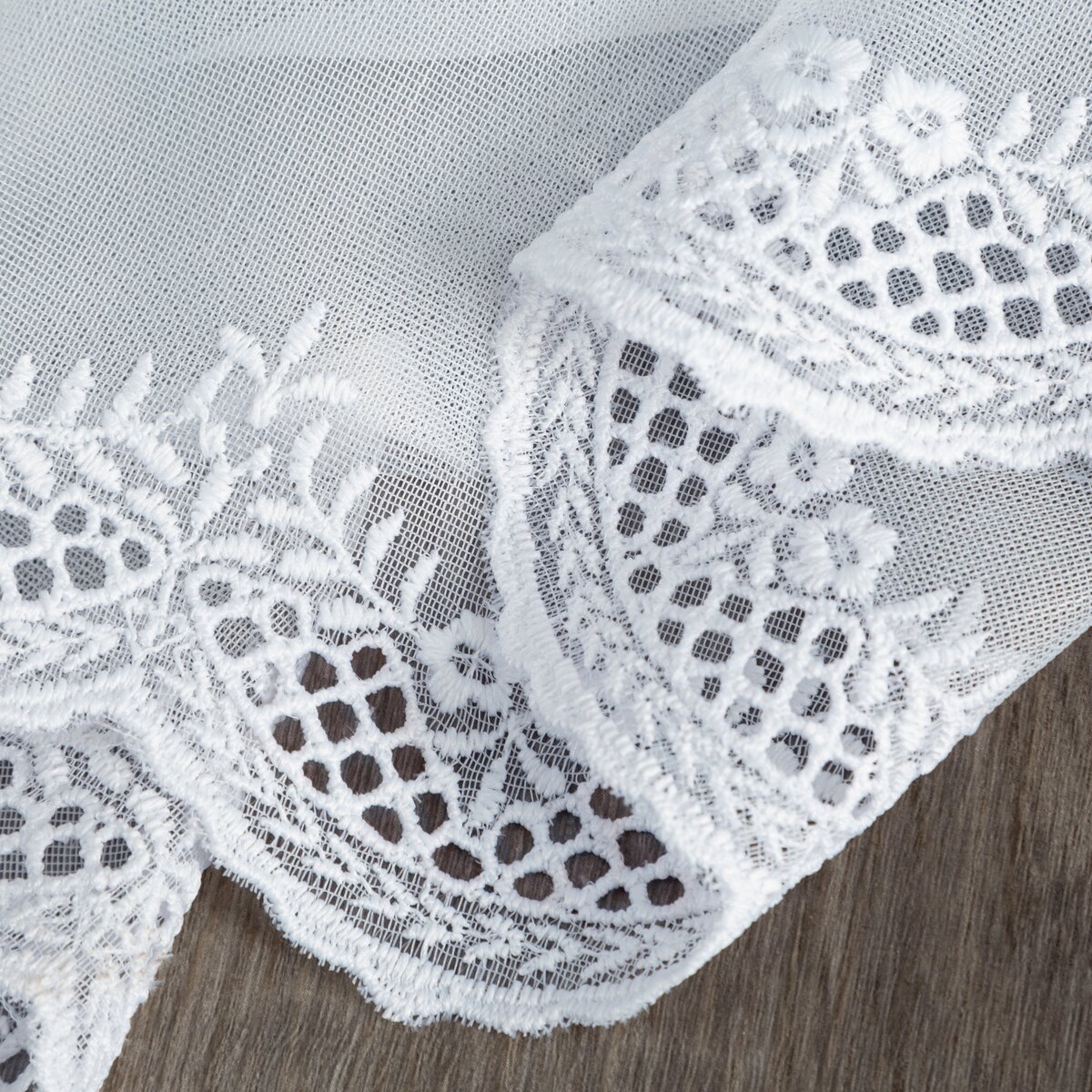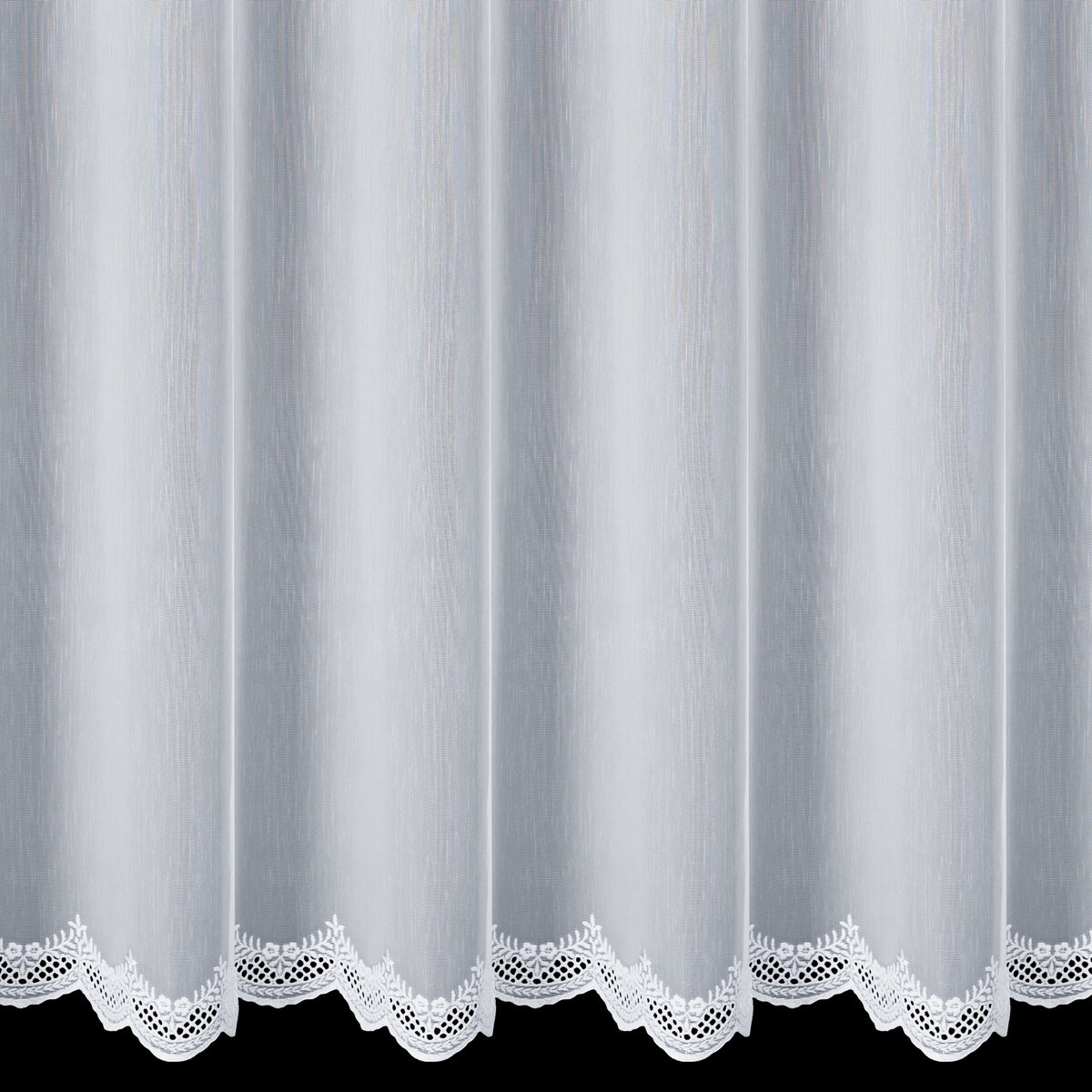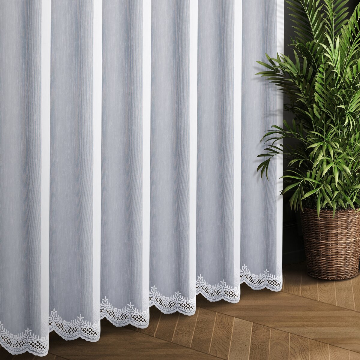 Záclona F120992, šití na míru, bílá matná, dolní lem s výšivkou