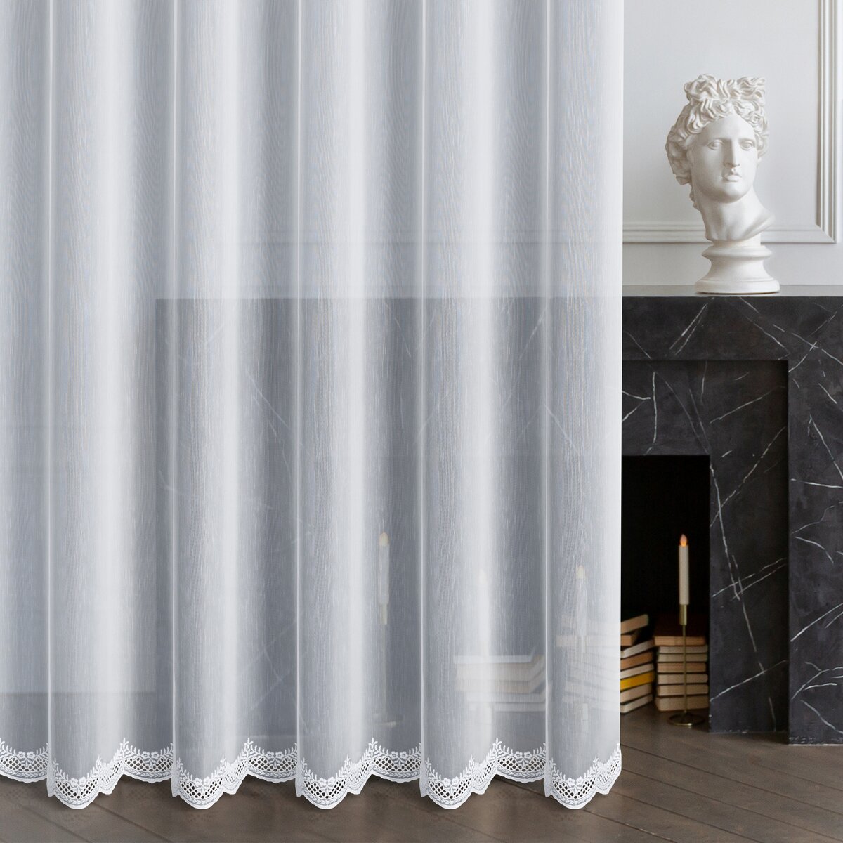 Záclona F120992, bílá matná, typ aden, dolní lem ornamentová výšivka.