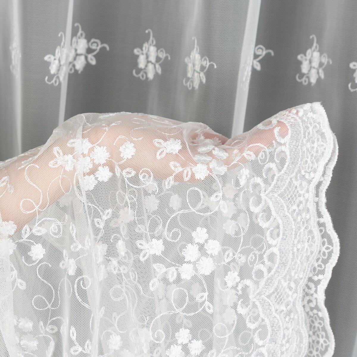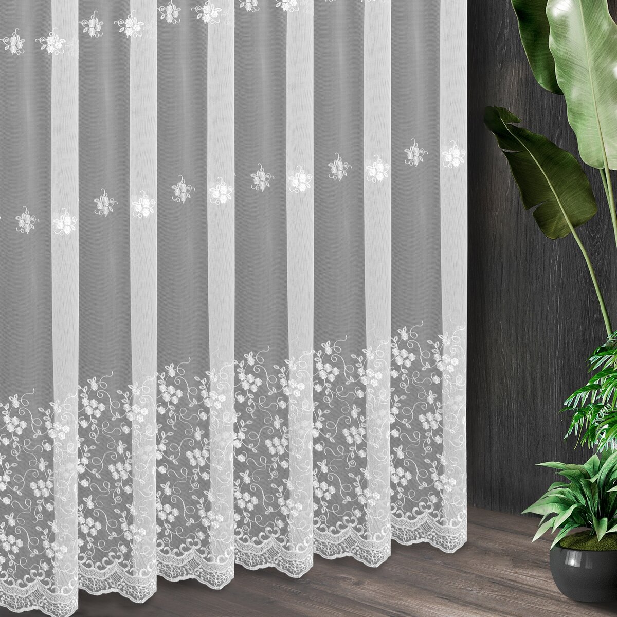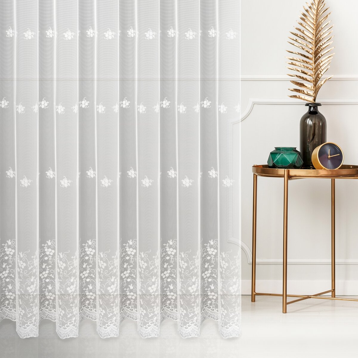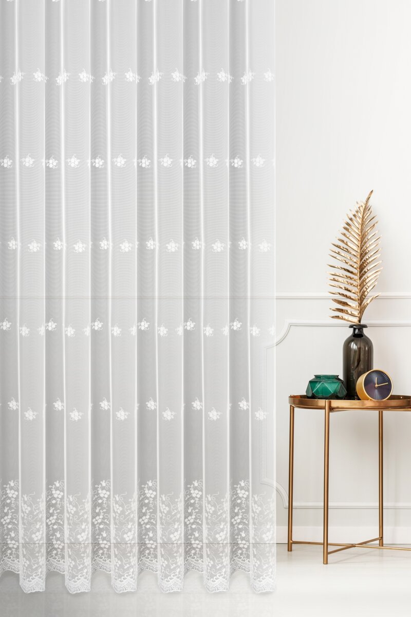 Záclona F14153, šití na míru, bílá matná, výšivka