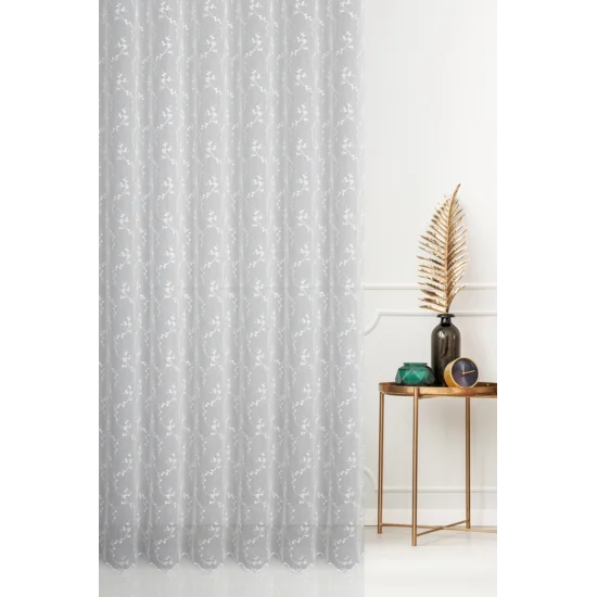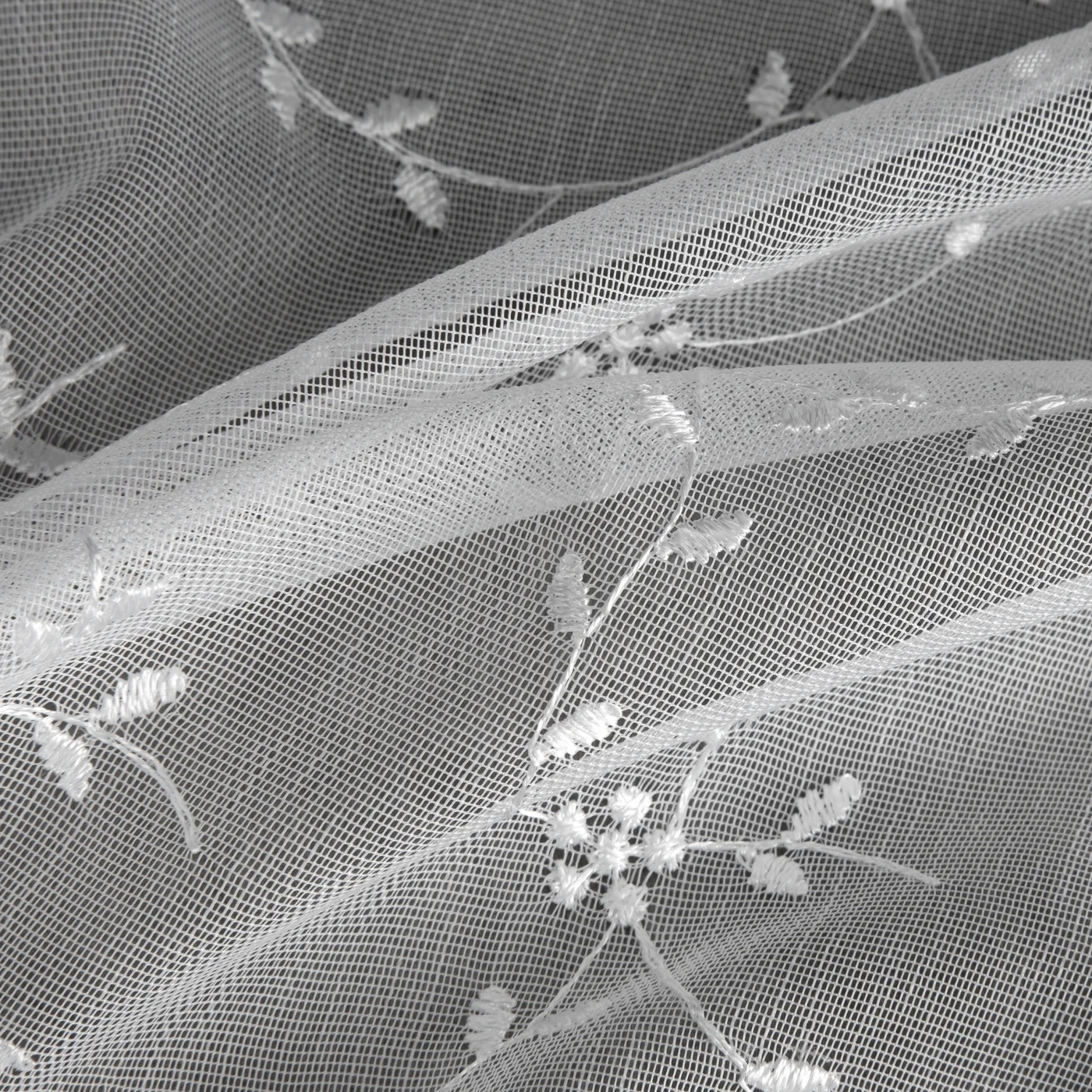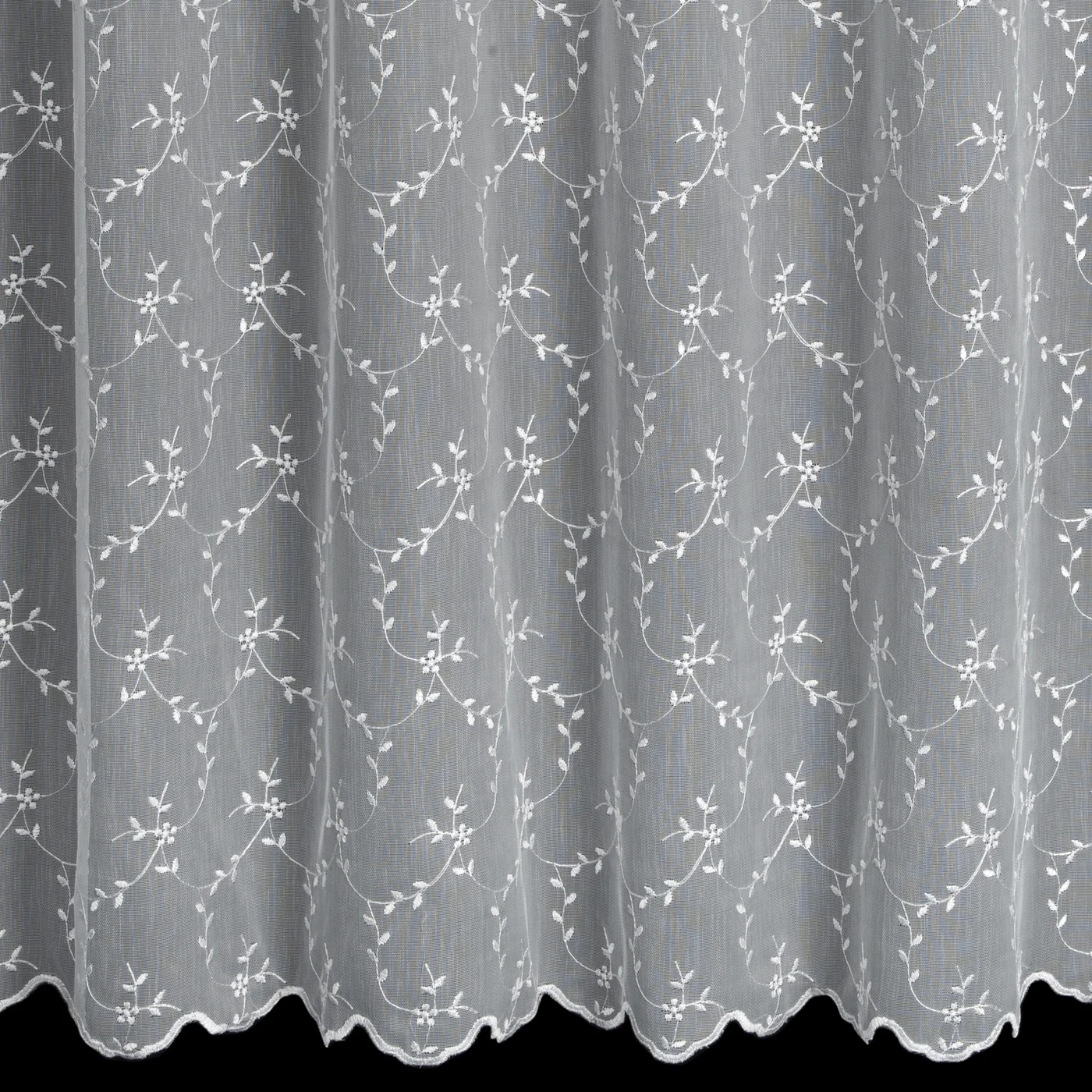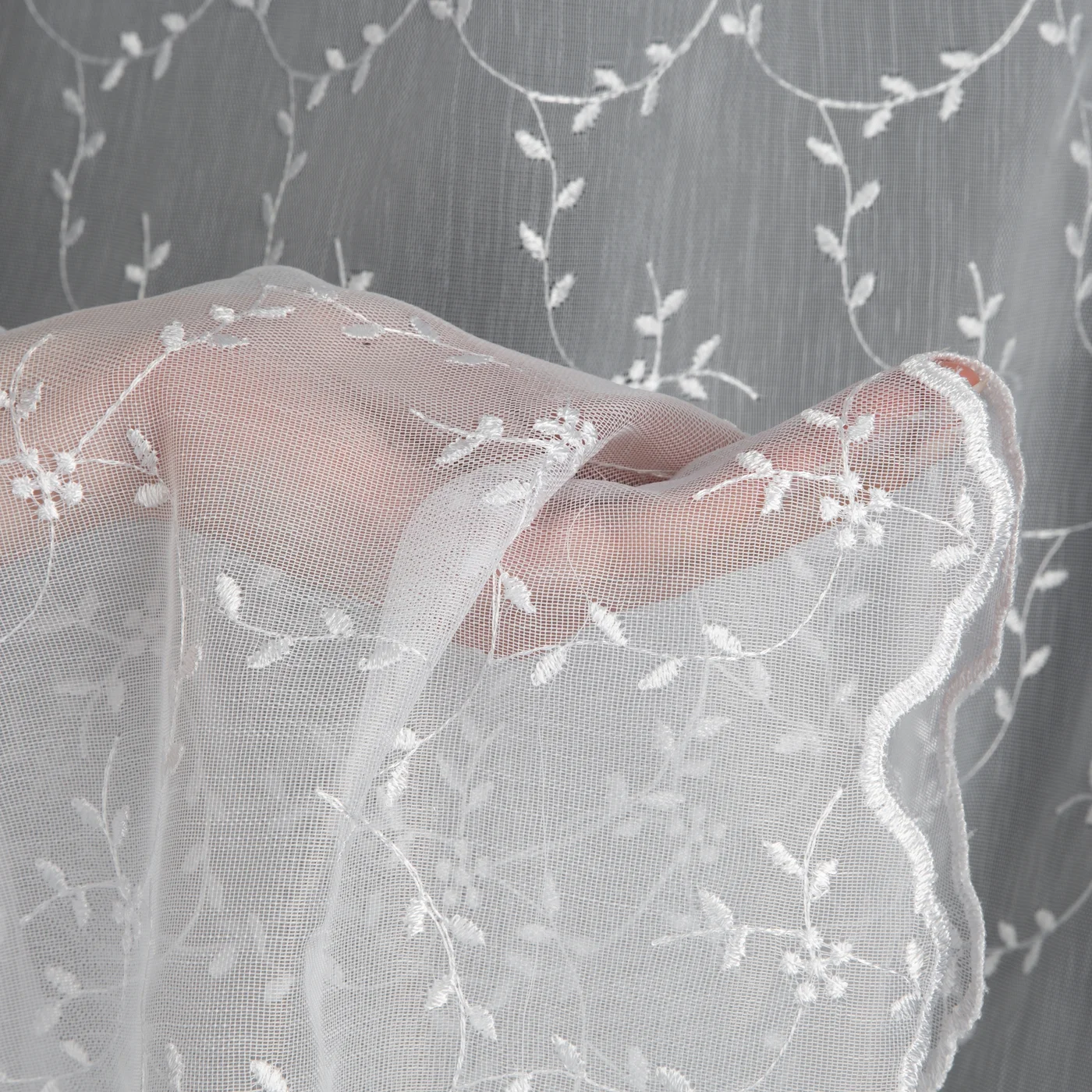 Záclona na míru F15083, matná jemná záclonovina s elegantní výšivkou, barva bílá