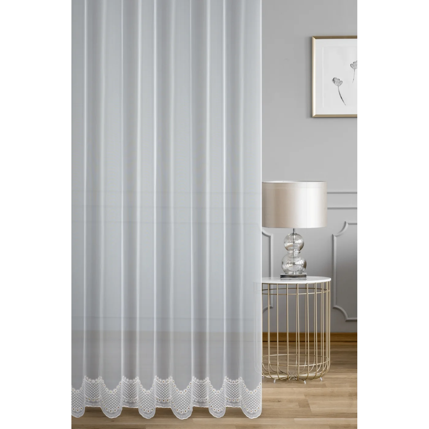 Záclona je ušita jako kompletní, dokončená, připravená ihned k zavěšení