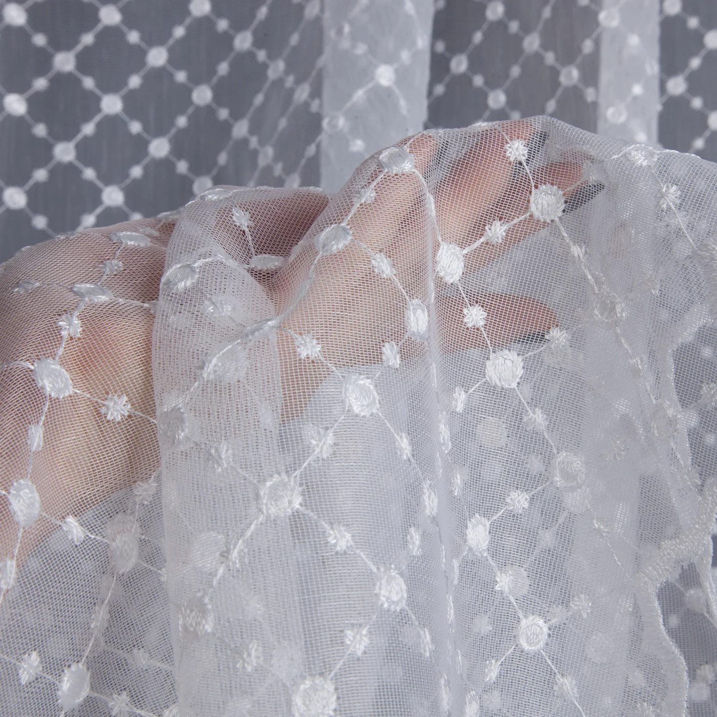 | Látka - vzhled (viz obrázek detailu látky) | záclonovina s výšivkou |