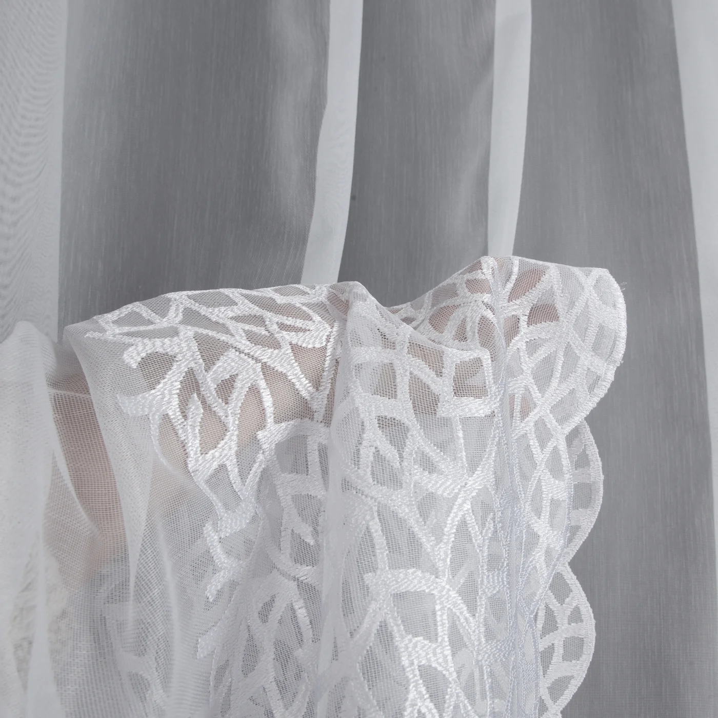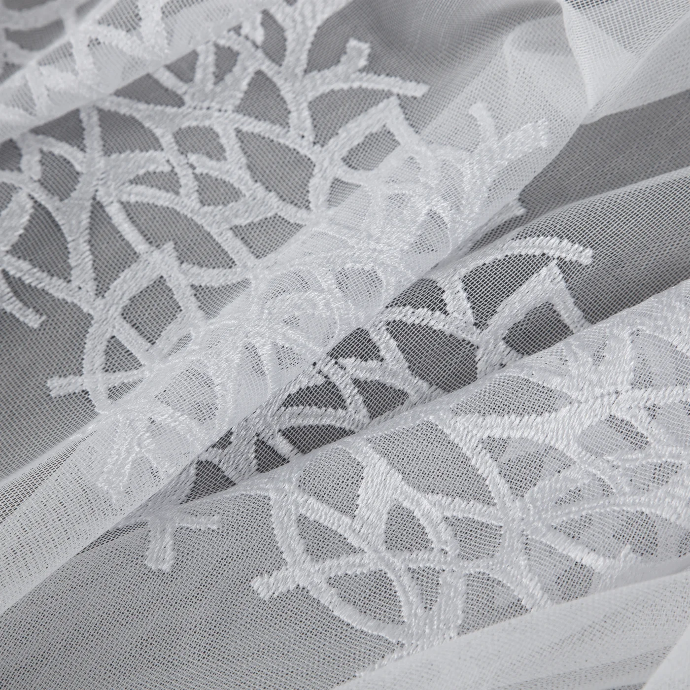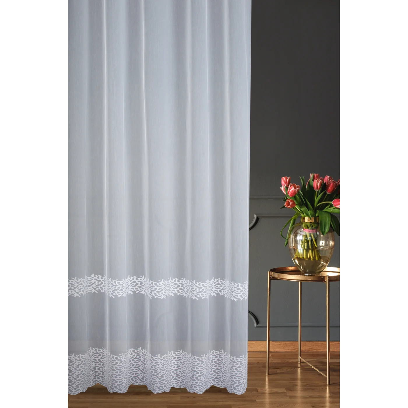 Záclona F28012, bílá, typ Aden, jemný vzor deštíku, 2 pruhy výšivka, výška vzoru od spodu látky cca 80cm.