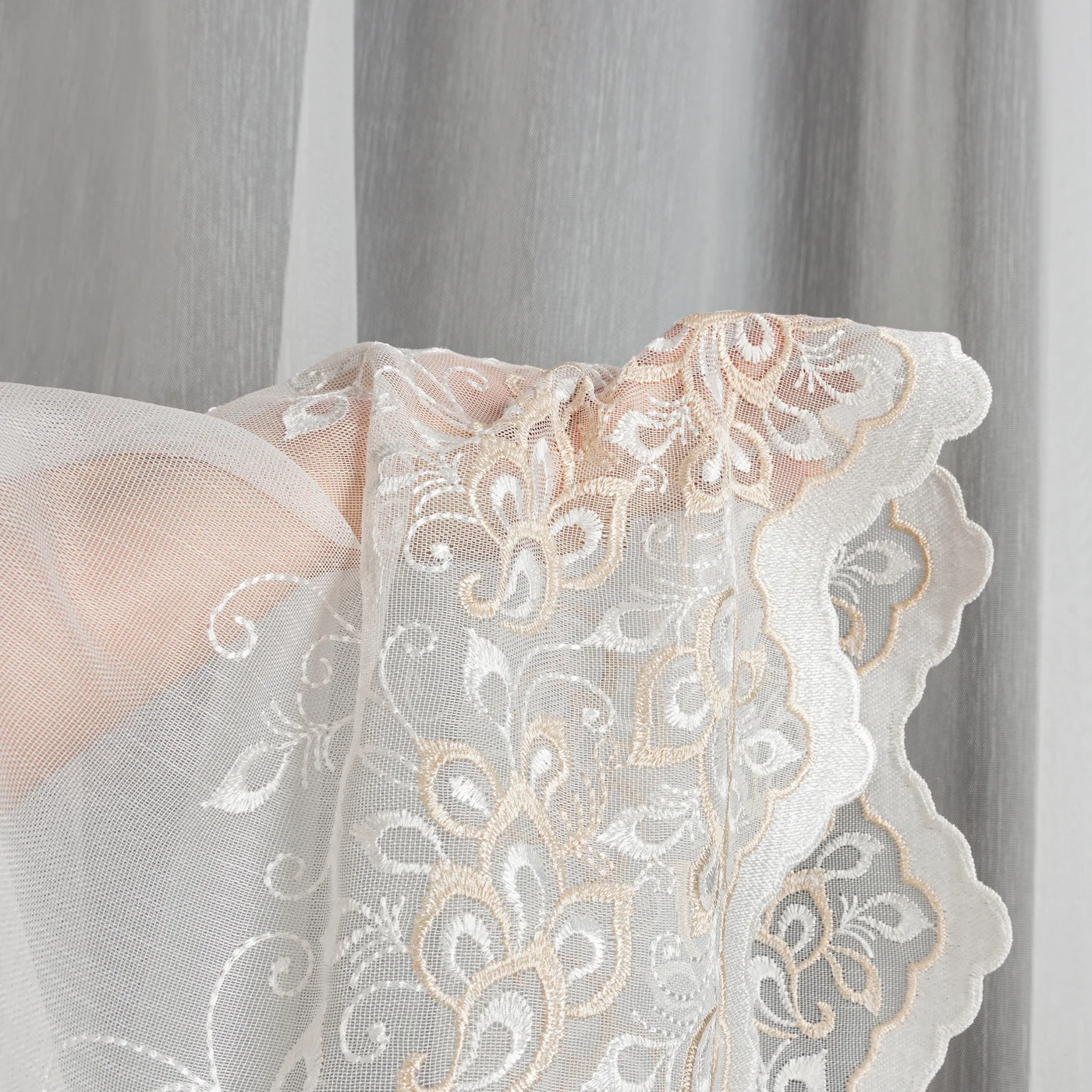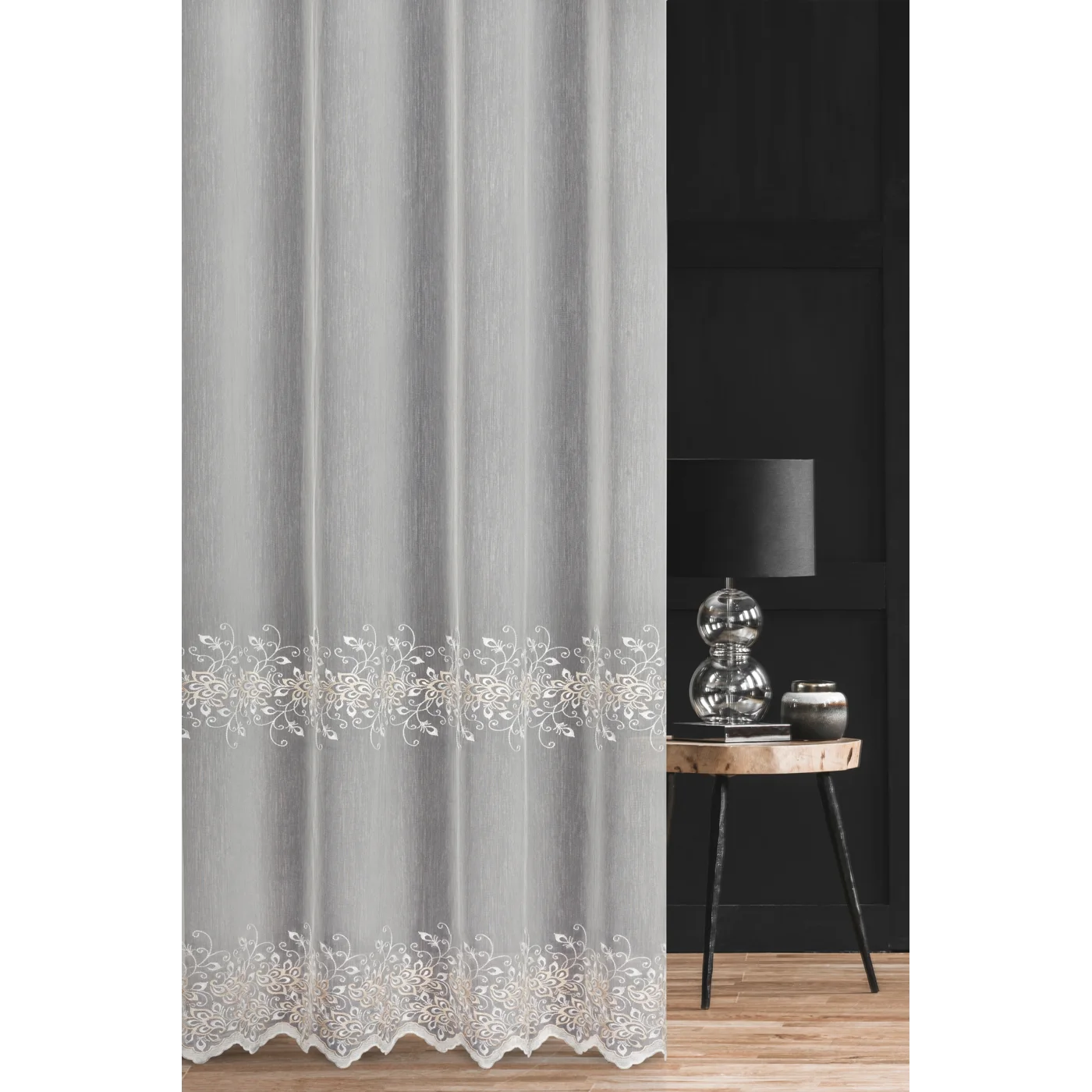Záclona F28015B, krémová, matná látka typu Aden, dvoubarevná romantická výšivka, šití na míru