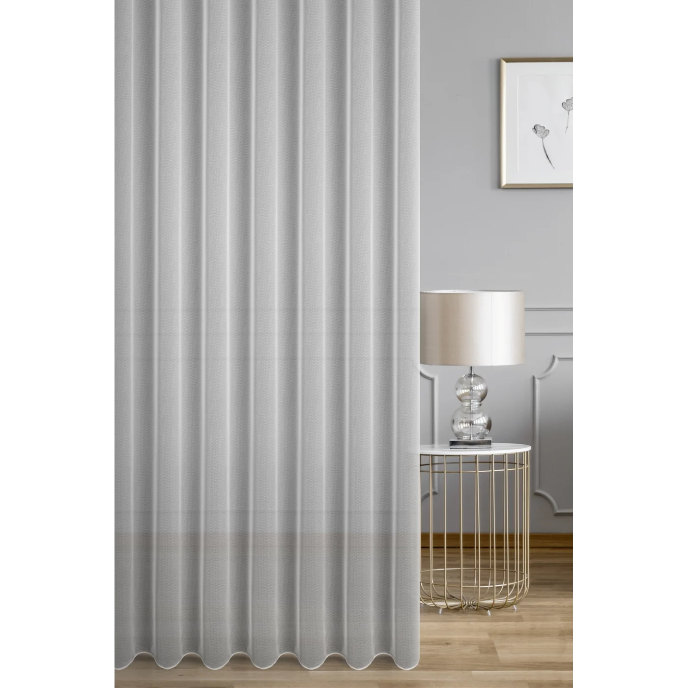 Záclona je ušita jako kompletní, dokončená, připravená ihned k zavěšení