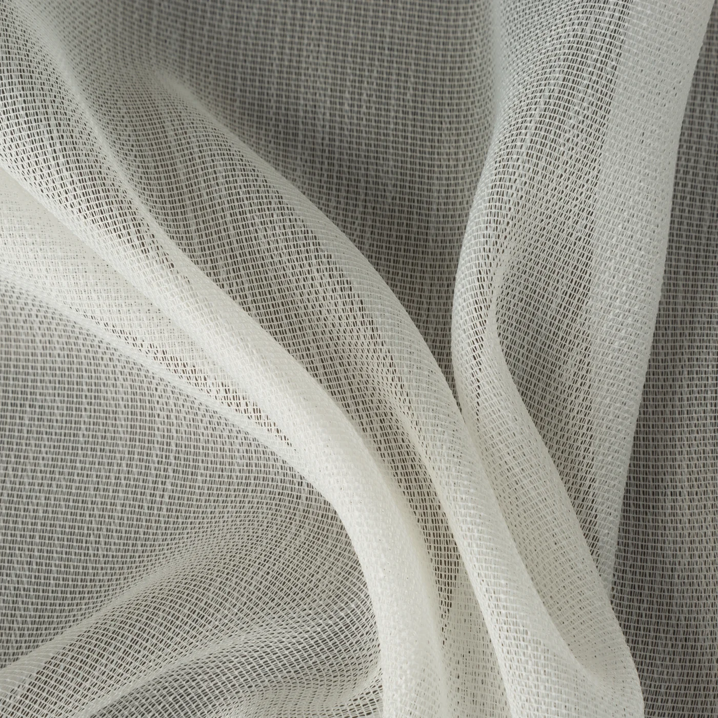Záclona F318331, krémová mikrokosíťka s jemným vzorem deštíku, dolní okraj zátěžový steh.