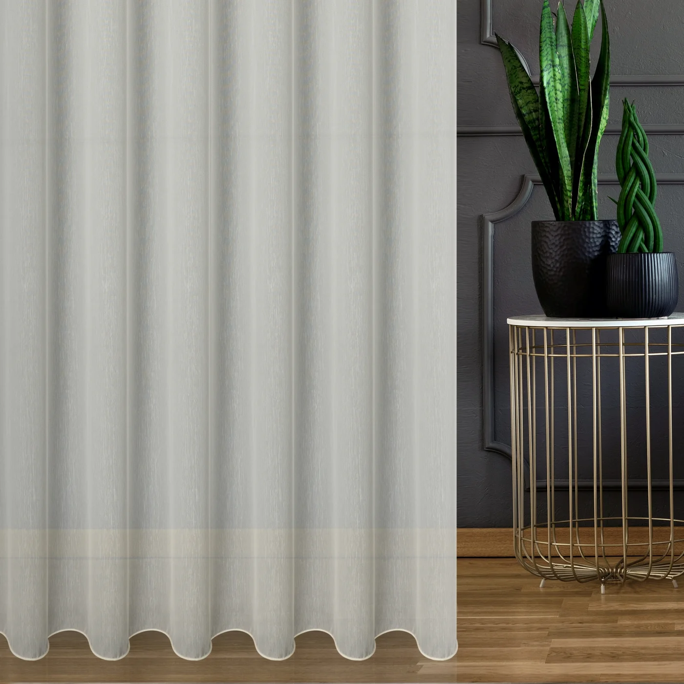 Záclona je ušita jako kompletní, dokončená, připravená ihned k zavěšení