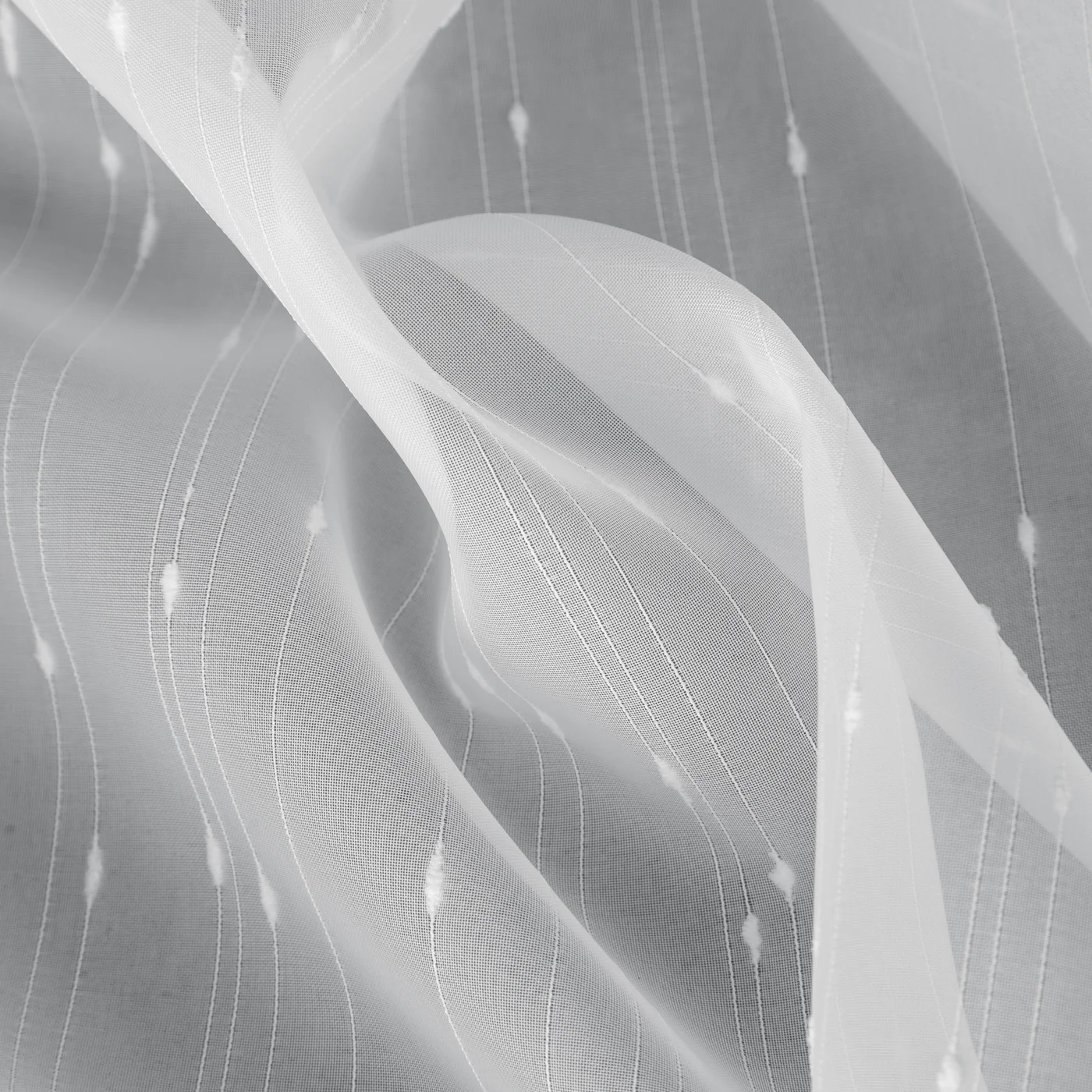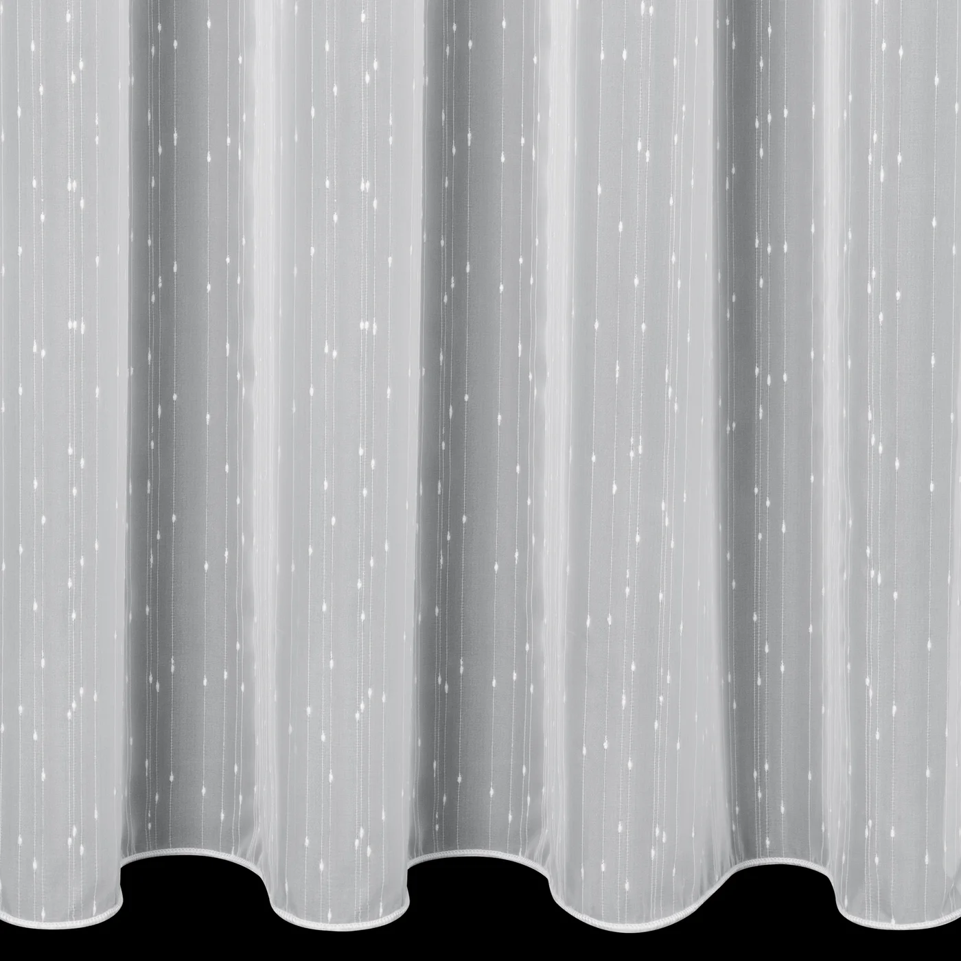 Záclona F4331, šití na míru, jemná matná bílá, vzor svislé proužky s deštíkem, dole zátěžový lem