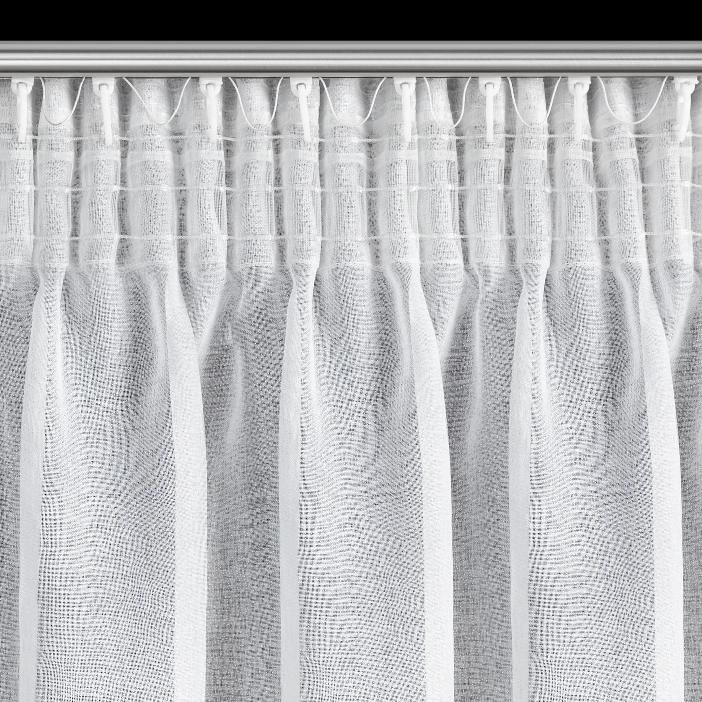 | Využitelná šířka garnýže | pro zavěšení na řasící pásku lze využít celou šíři garnýže - včetně bočních částí od držáků garnýže po koncovky, pro zavěšení do tunýlku za páskou lze vždy využít pouze část garnýže mezi jeho držáky |