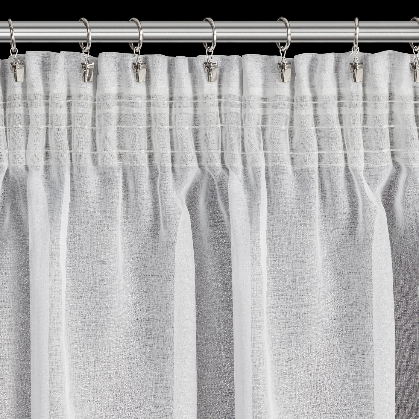 Efektní dekorace látky jakoby stříbrným prachem, dodá zácloně jemný měňavý lesk