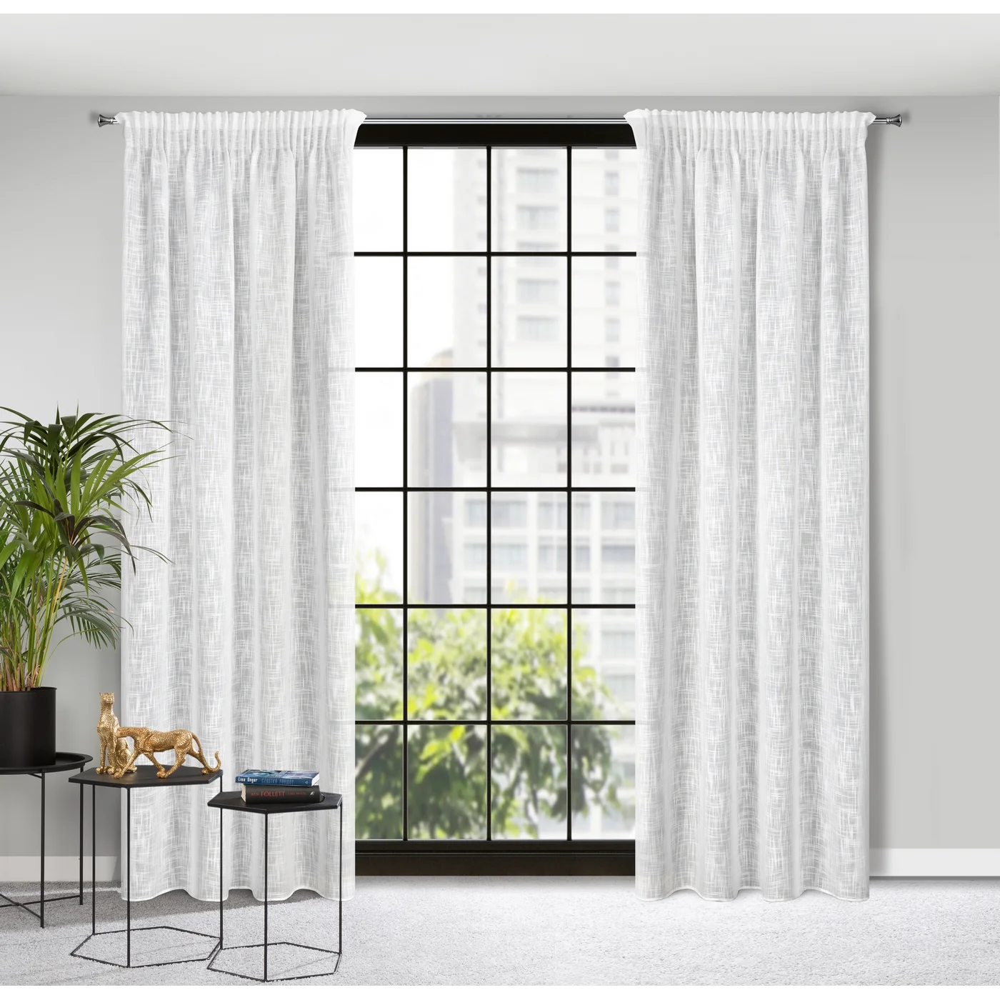 Záclona Liren, bílá, styl eco, velikost 140x270cm s možností zkrácení, s řasící páskou, imitace dvojitého splotu