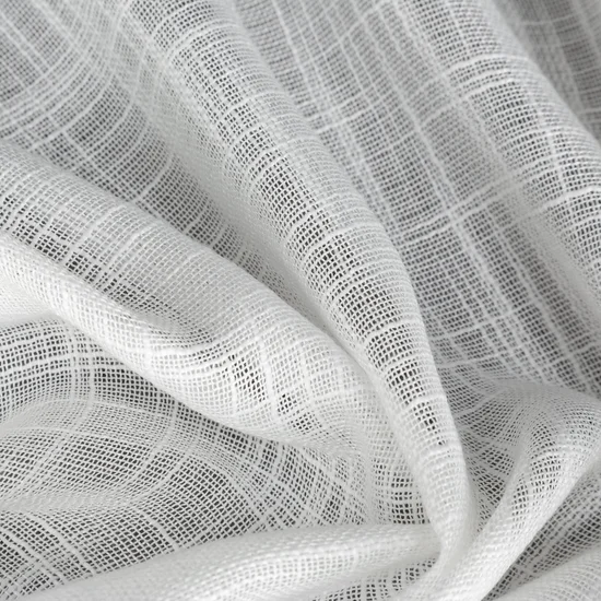 Záclona Liren, bílá poloprůsvitná v eco stylu, velikost 140x270cm, řasící páska nebo tunýlek, lze zkrátit