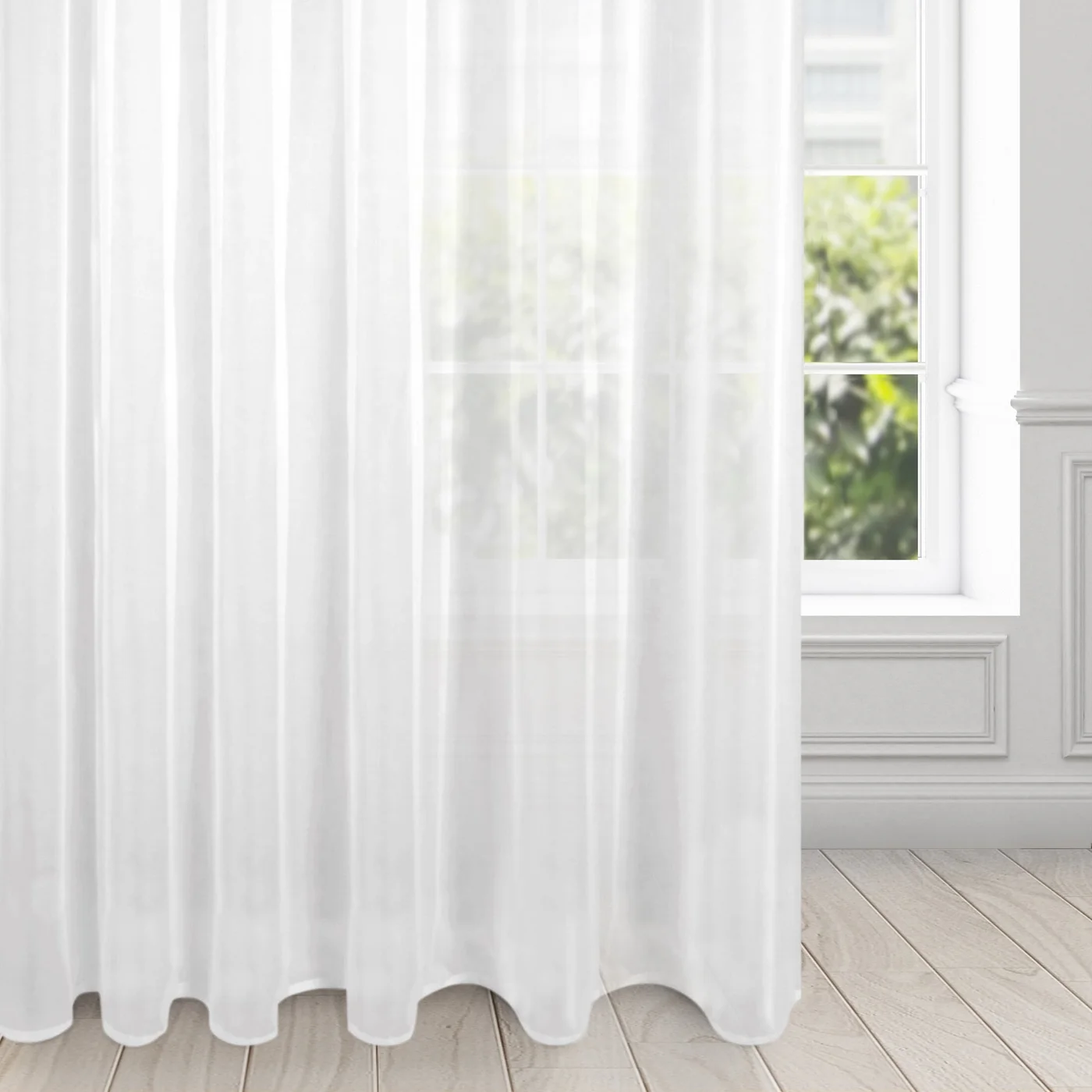 Záclona Lucy - jemný bílý voál umožní univerzální použití v jakémkoliv interiéru, odstíní přímé sluneční paprsky a příjemně prosvětlí interiér rozptýleným světlem.