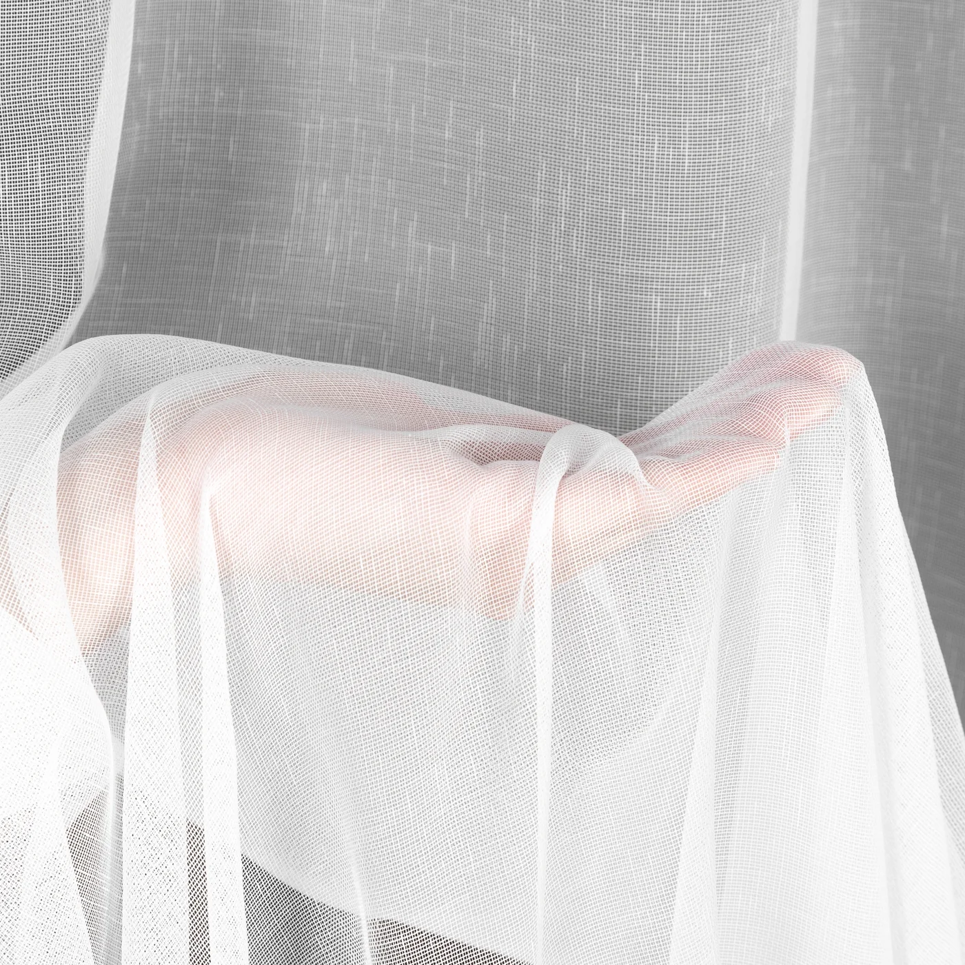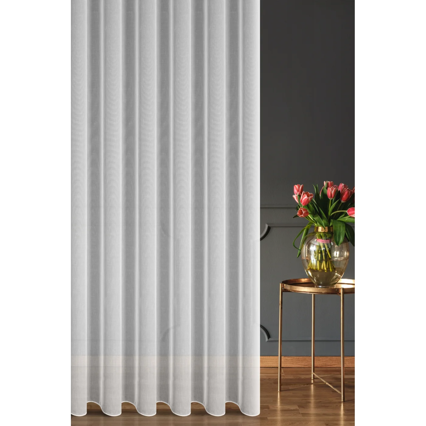 Záclona Menevse, hustá záclonovina s přírodním splotem, vzor deštíku, barva bílá, šití na míru
