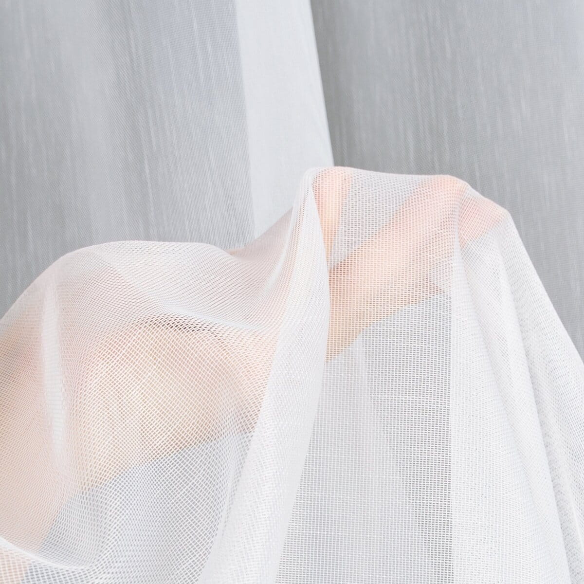 Záclona Mira1, hustší mikrosíťka v bílé barvě, jemný vzor deštíku, šití na míru