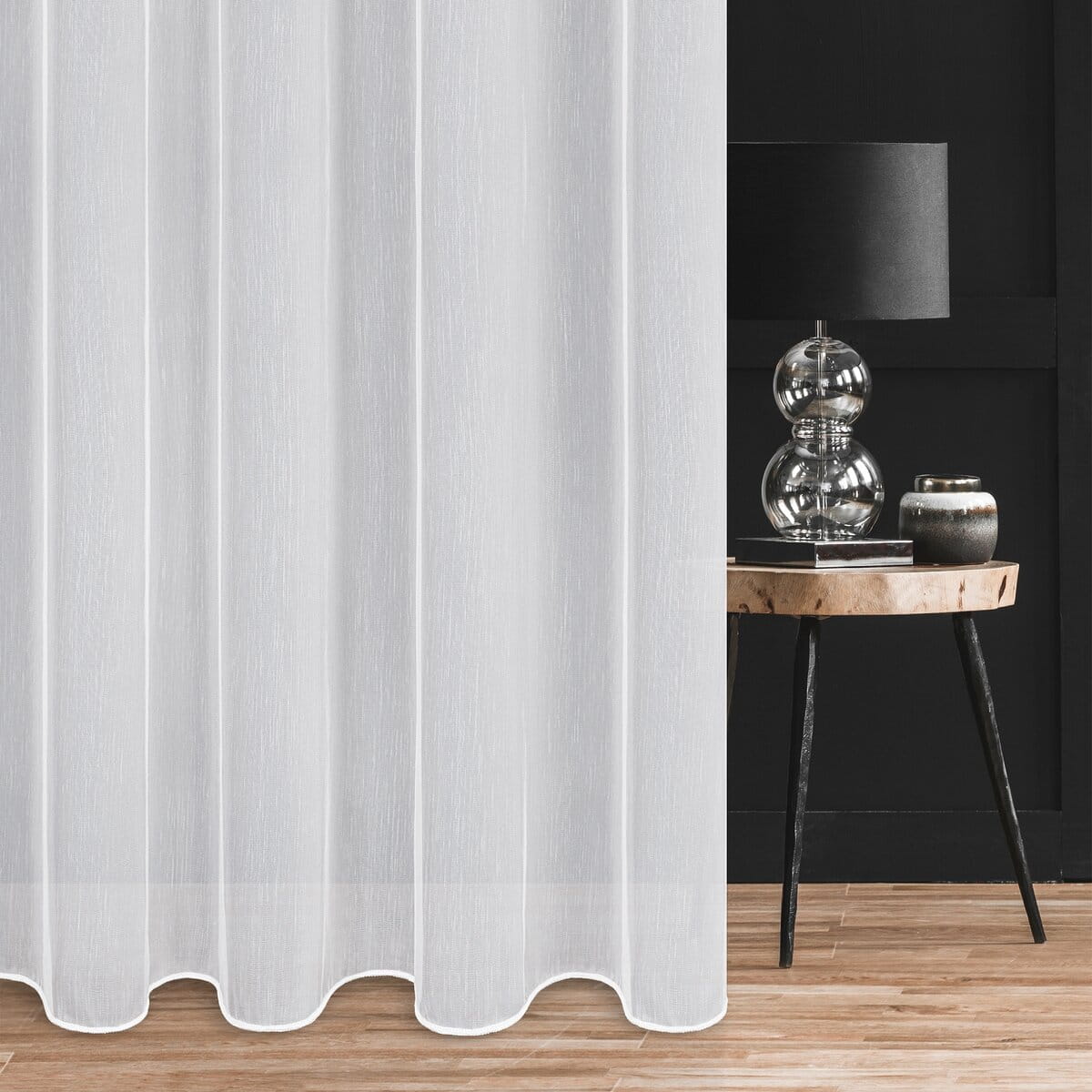 Záclona je ušita jako kompletní, dokončená, připravená ihned k zavěšení