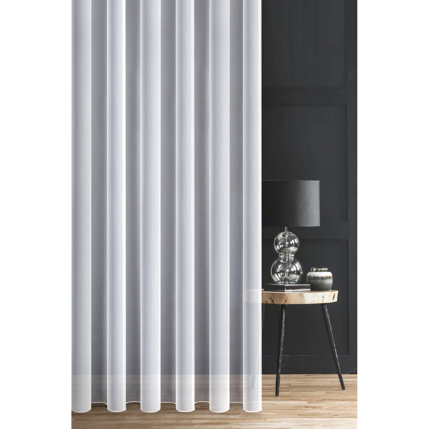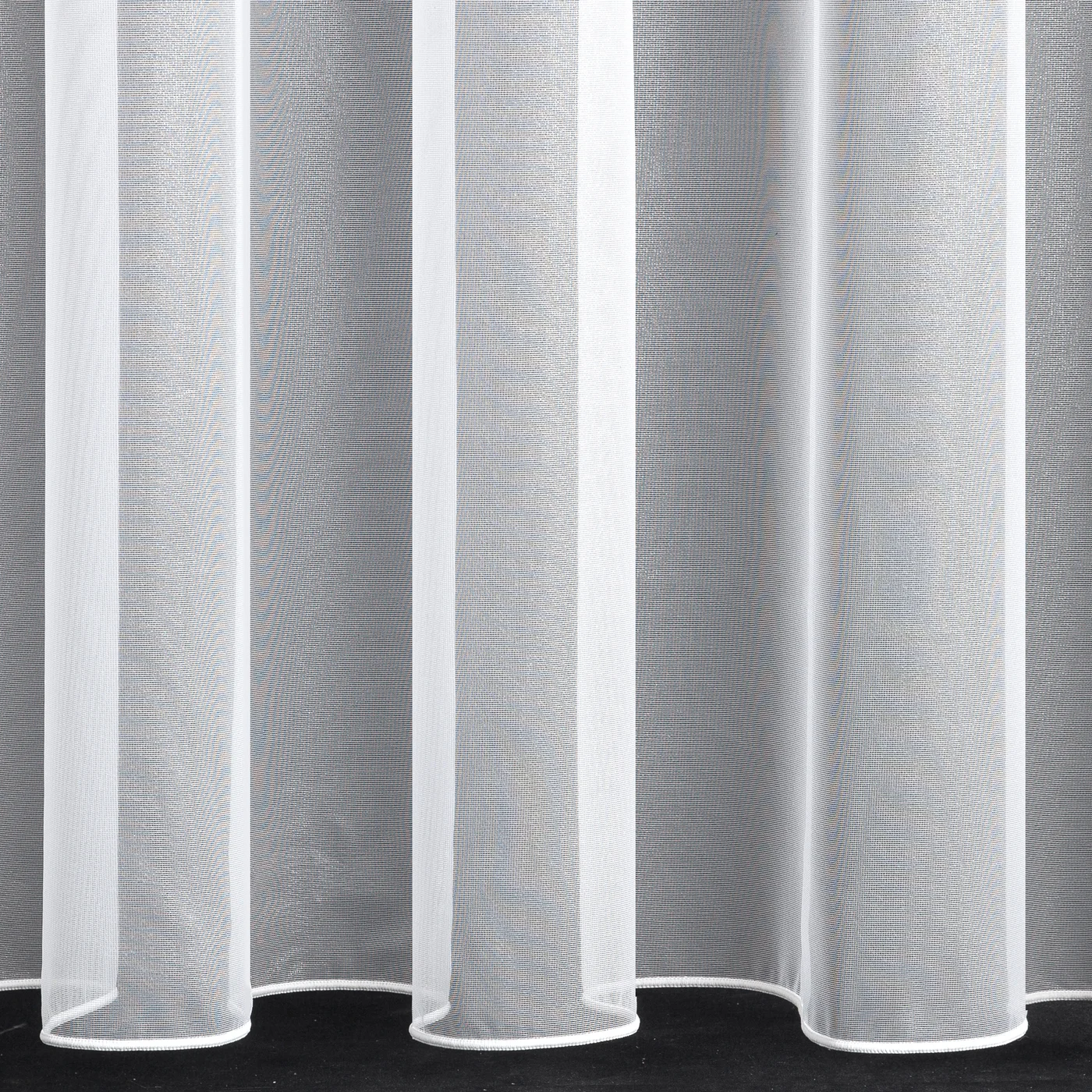 Záclona na míru Peru Org, lehká poloprůsvitná záclonovina s naznačeným leskem, barva sněžně bílá, dole zátěžový steh