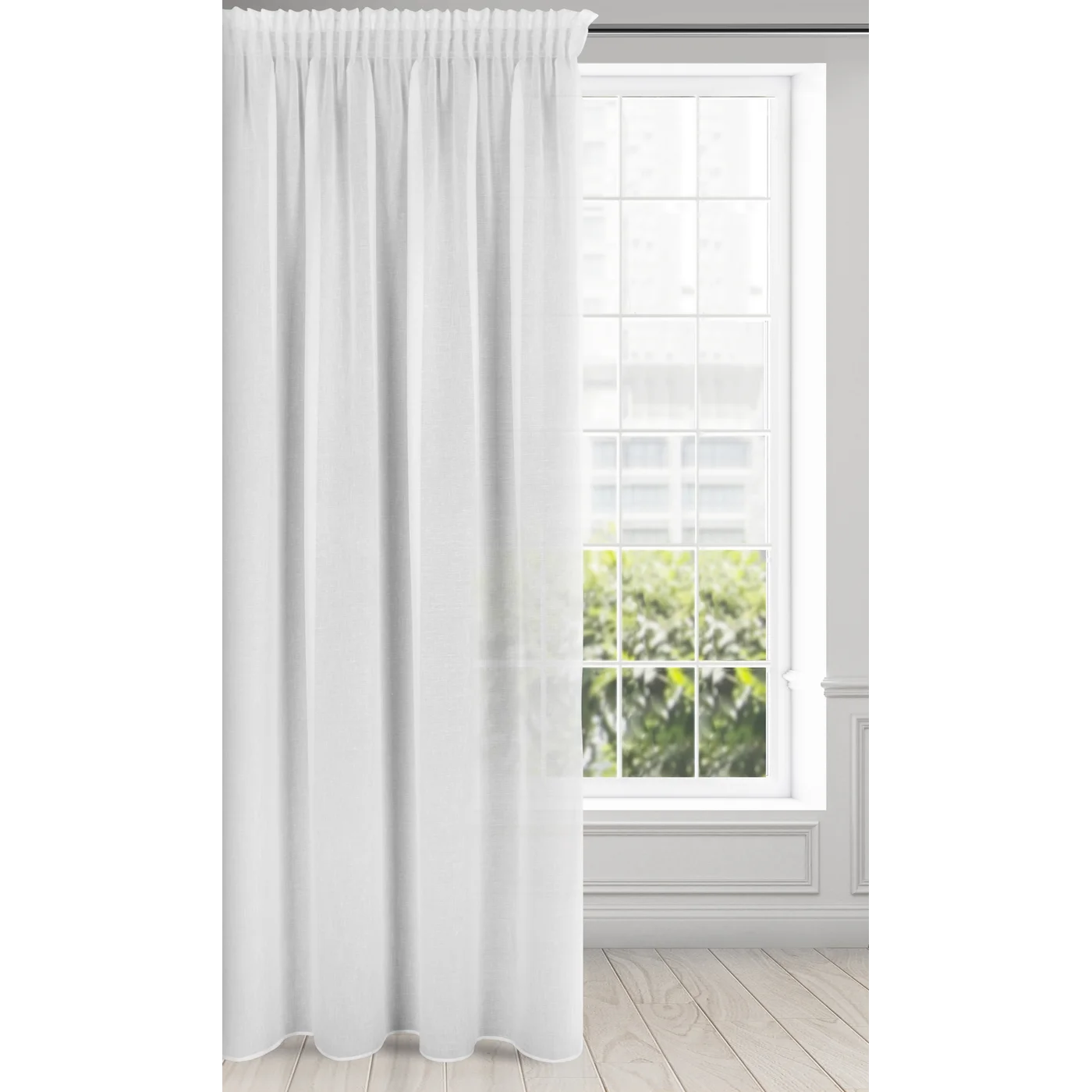 Záclona Sandra, bílá hladká etamína, velikost 140x270cm, řasící páska, lze zkrátit