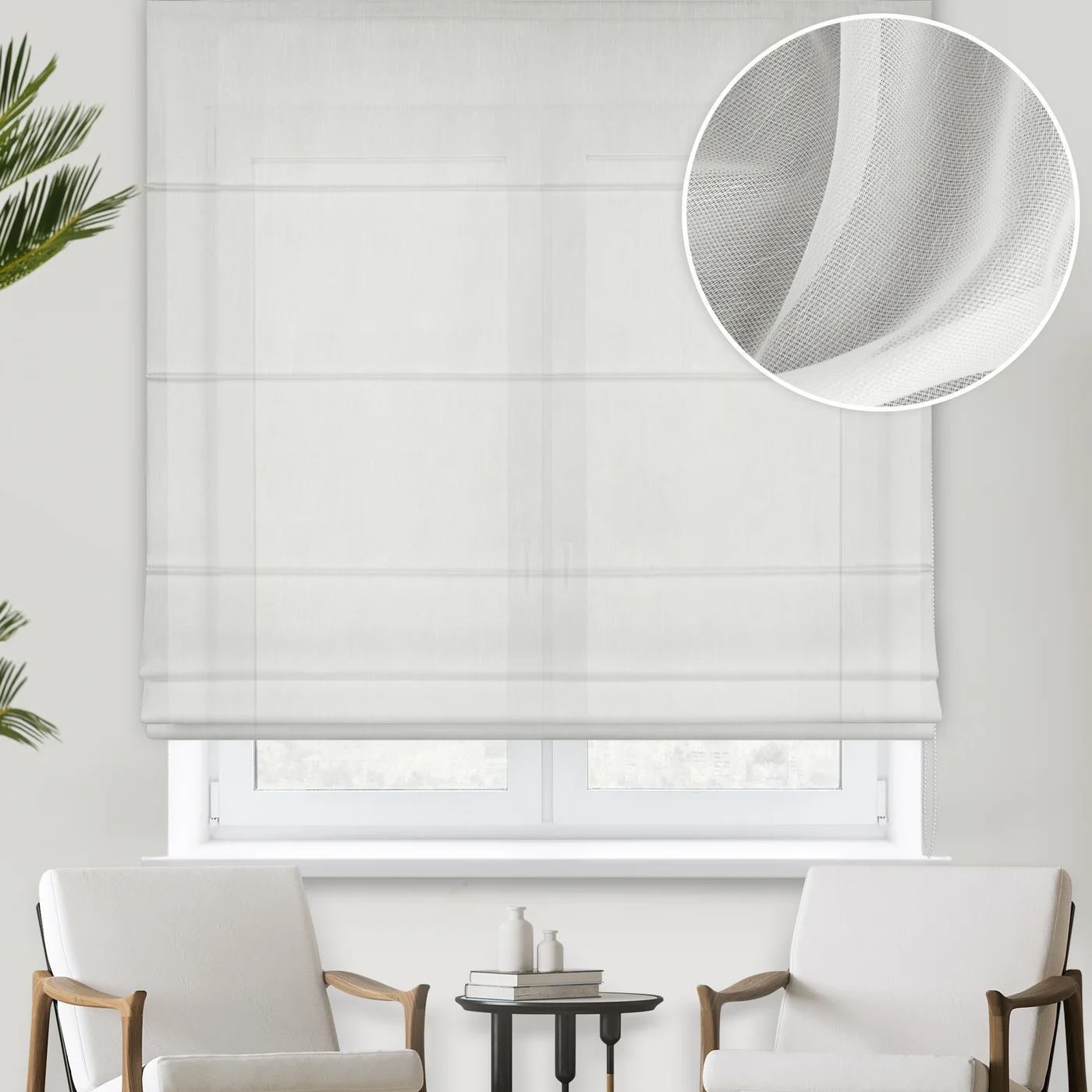 Římská roleta na míru Calib1, hustší záclonovina s jemným vzorem deštíku, barva natural ecru (není to čistě bílá barva)
