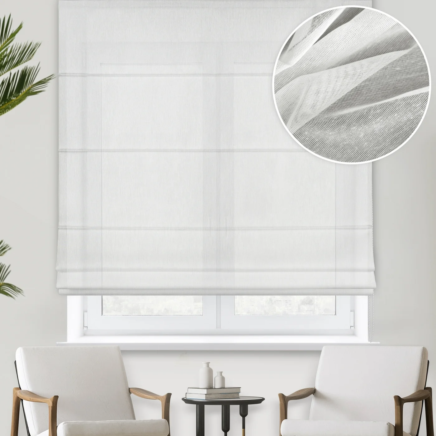 Záclonová římská roleta F3517, jemný batist, barva natural ecru, šití na míru