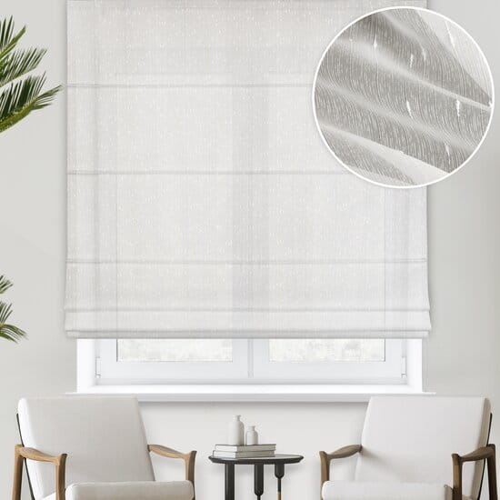 Záclonová římská roleta Vanita, krémová mikrosíťka se vzorem deštíku, šití na míru