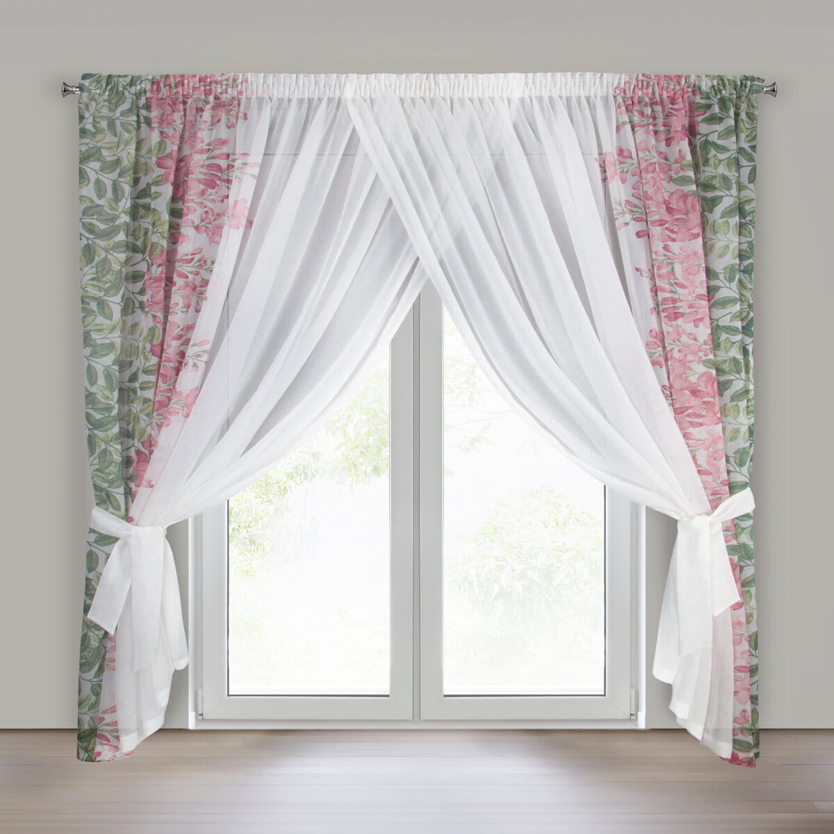 Záclonový komplet Julietta, etamína s bočním potiskem, řasící páska, velikost 400x250cm, lze zkrátit