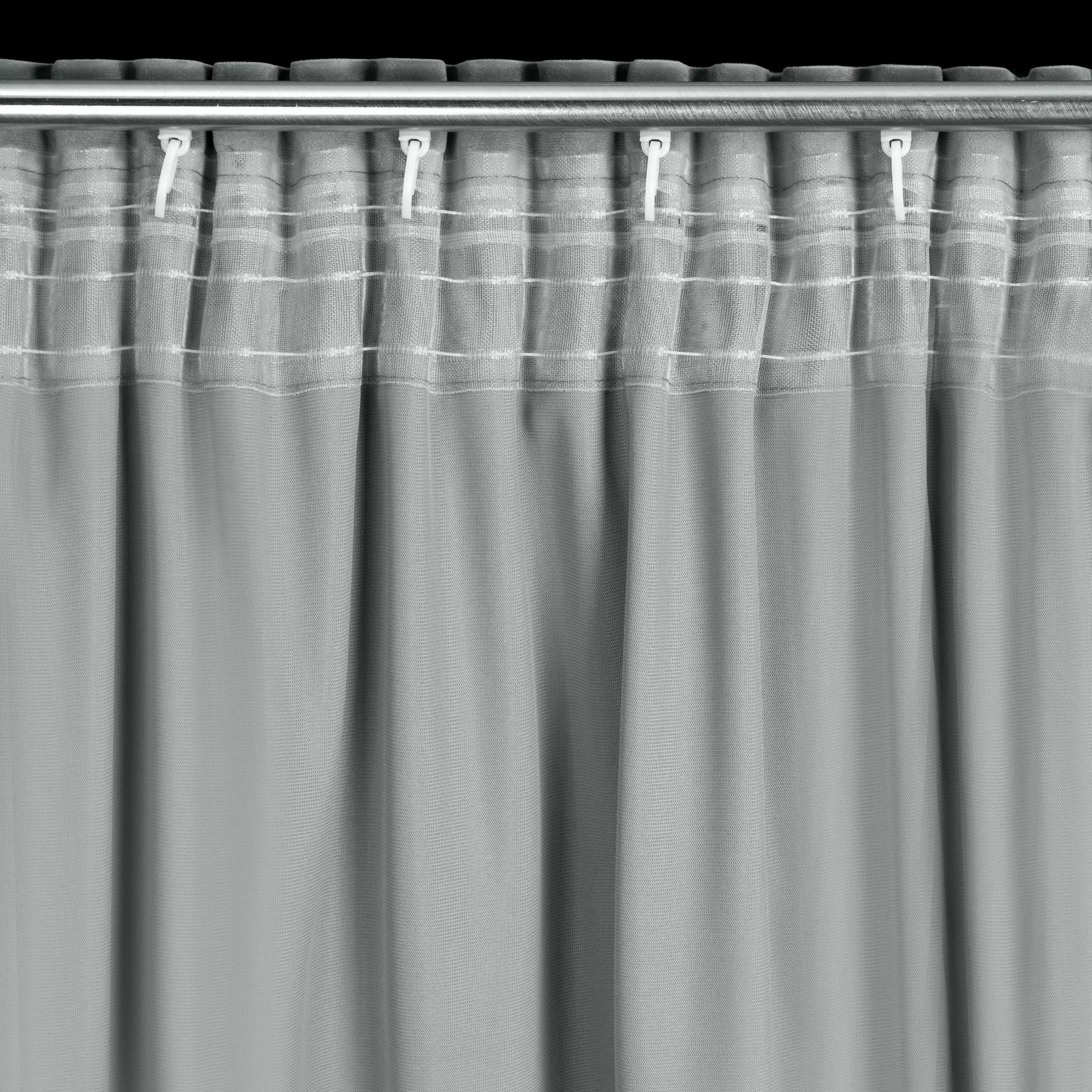 | Využitelná šířka garnýže | pro zavěšení na řasící pásku lze využít celou šíři garnýže - včetně bočních částí od držáků garnýže po koncovky, pro zavěšení do tunýlku za páskou lze vždy využít pouze část garnýže mezi jeho držáky |