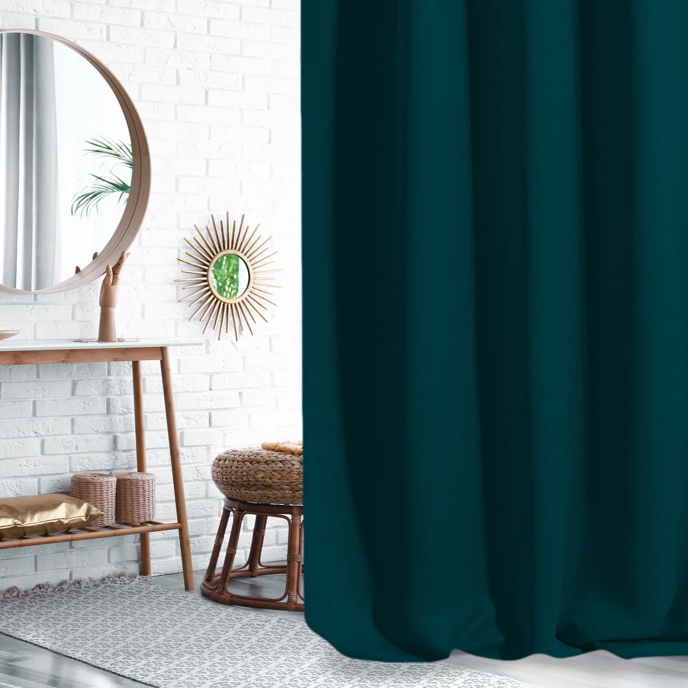 Závěs Blackout, petrolejová barva, řasící páska nebo tunýlek, 135x270cm, výšku lze zkrátit