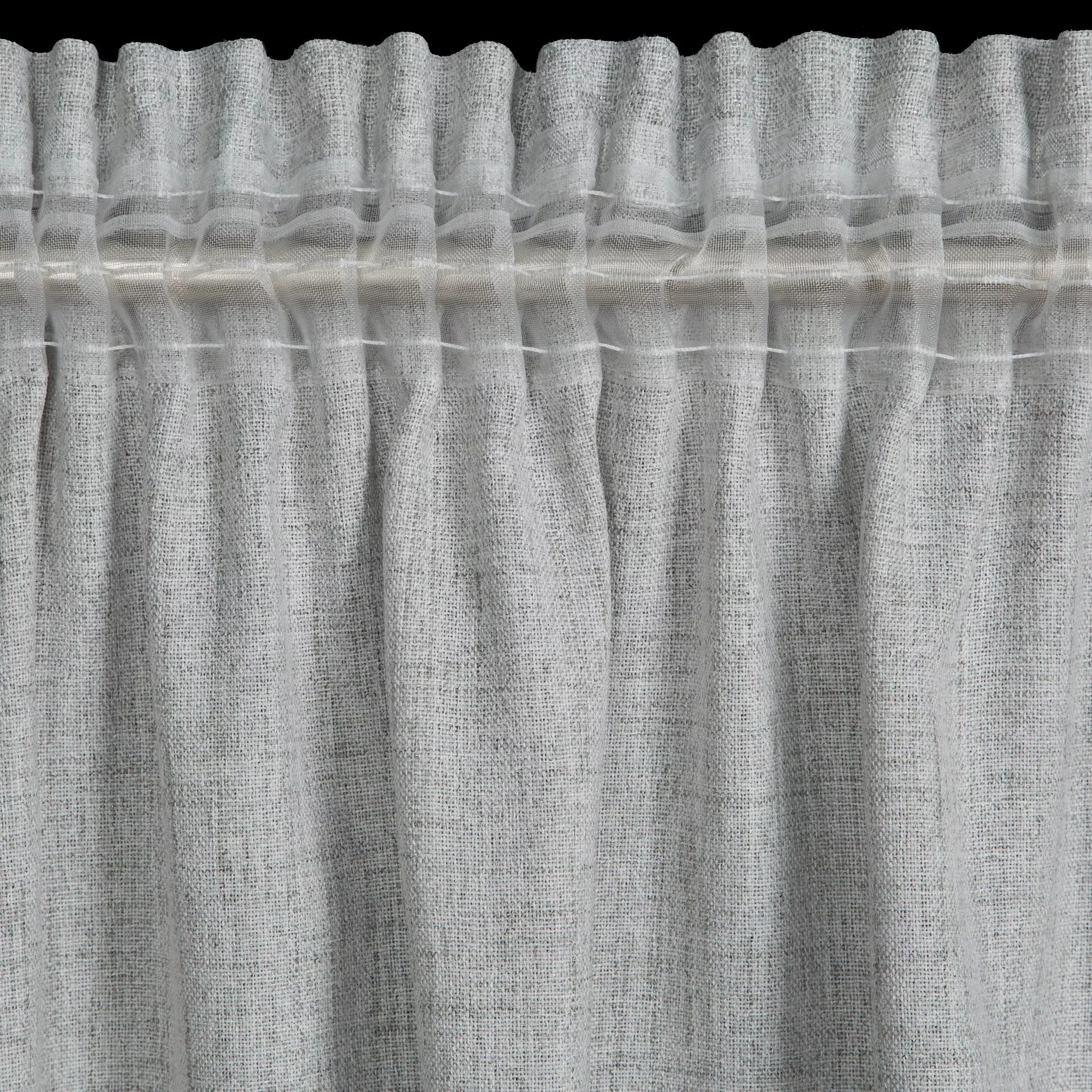Závěs Blanka, barva šedostříbrná, látka plátěného vzhledu, jemná stříbřitá melanž, řasící páska, tunýlek, velikost 140x280cm, možnost zkrácení