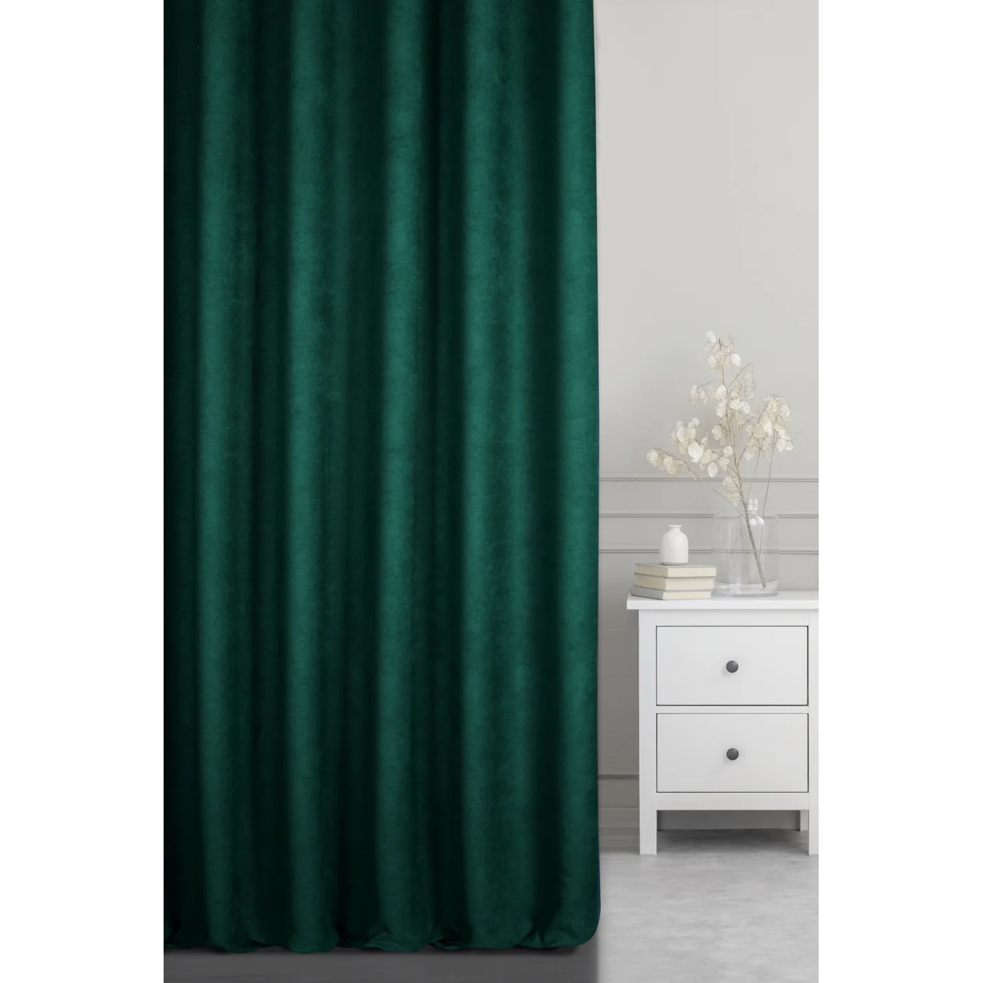 Závěs EDA Refined, barva tmavě zelená, výrazná struktura s velurovým vlasem, šití na míru
