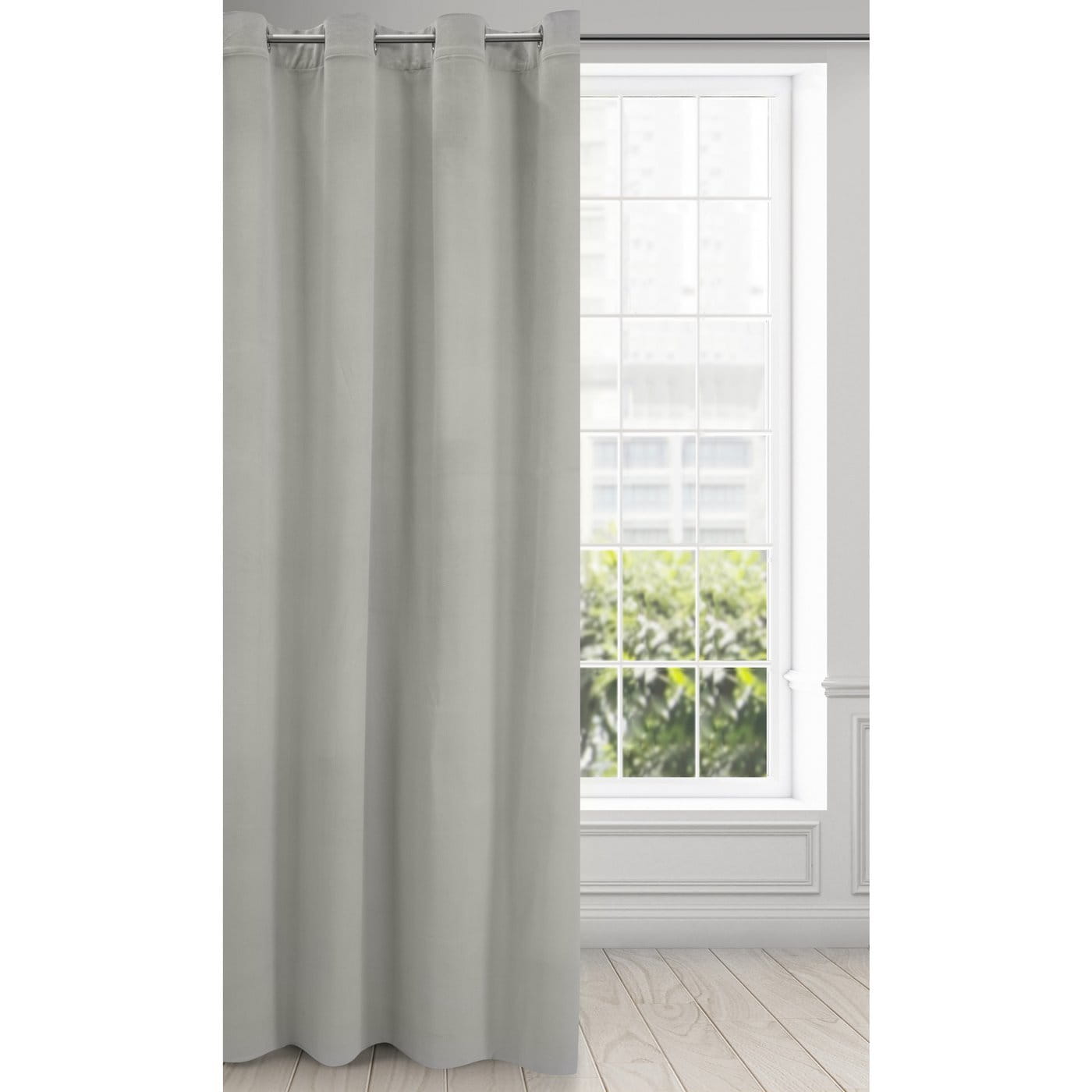 Závěs Milo, světle šedý velvet + drobný eco splot, na kroužcích, velikost 140x250cm, lze zkrátit