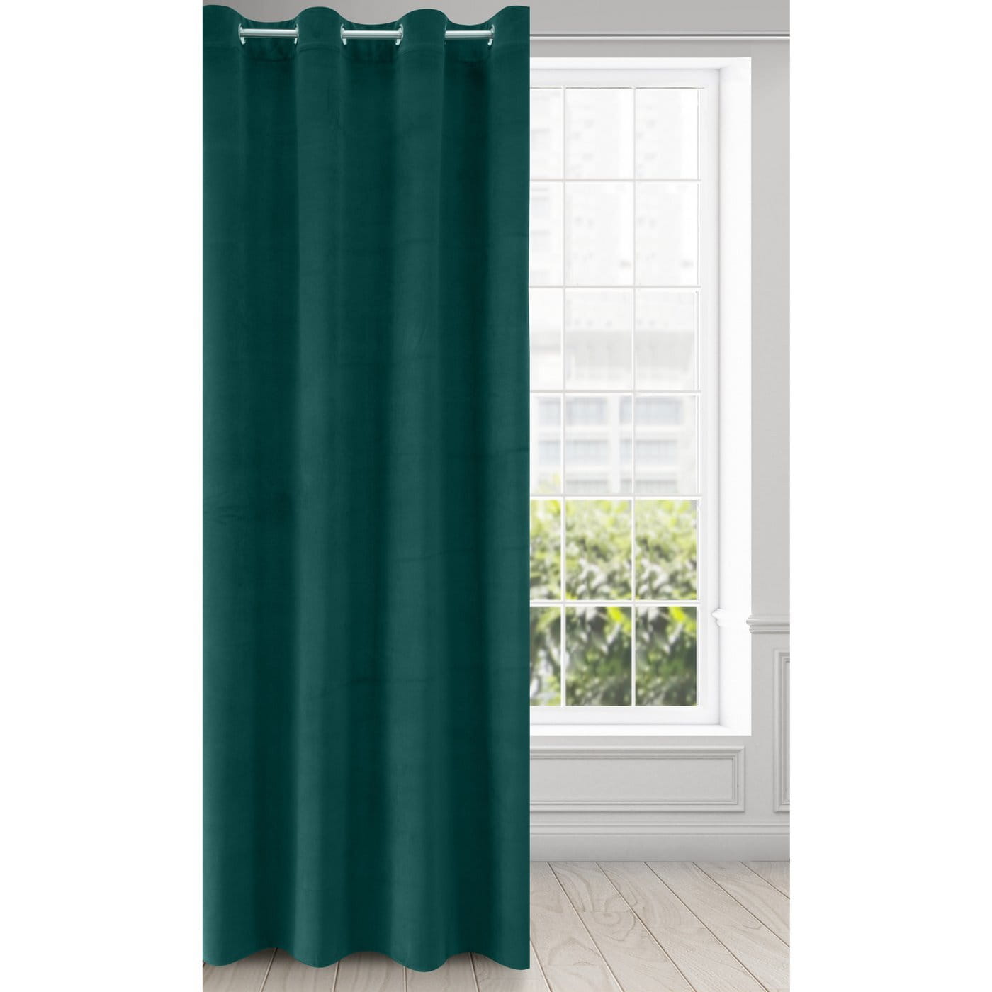 Závěs Milo, tmavá lesní zelená, velvet + drobný eco splot, na kroužcích, velikost 140x250cm, lze zkrátit