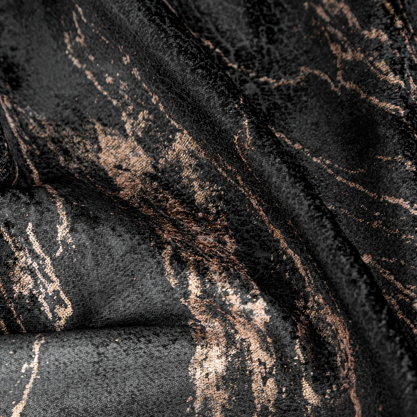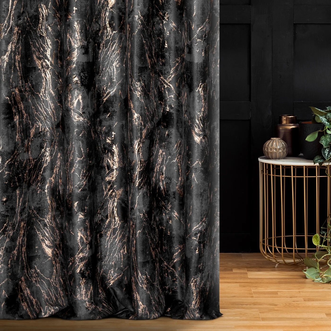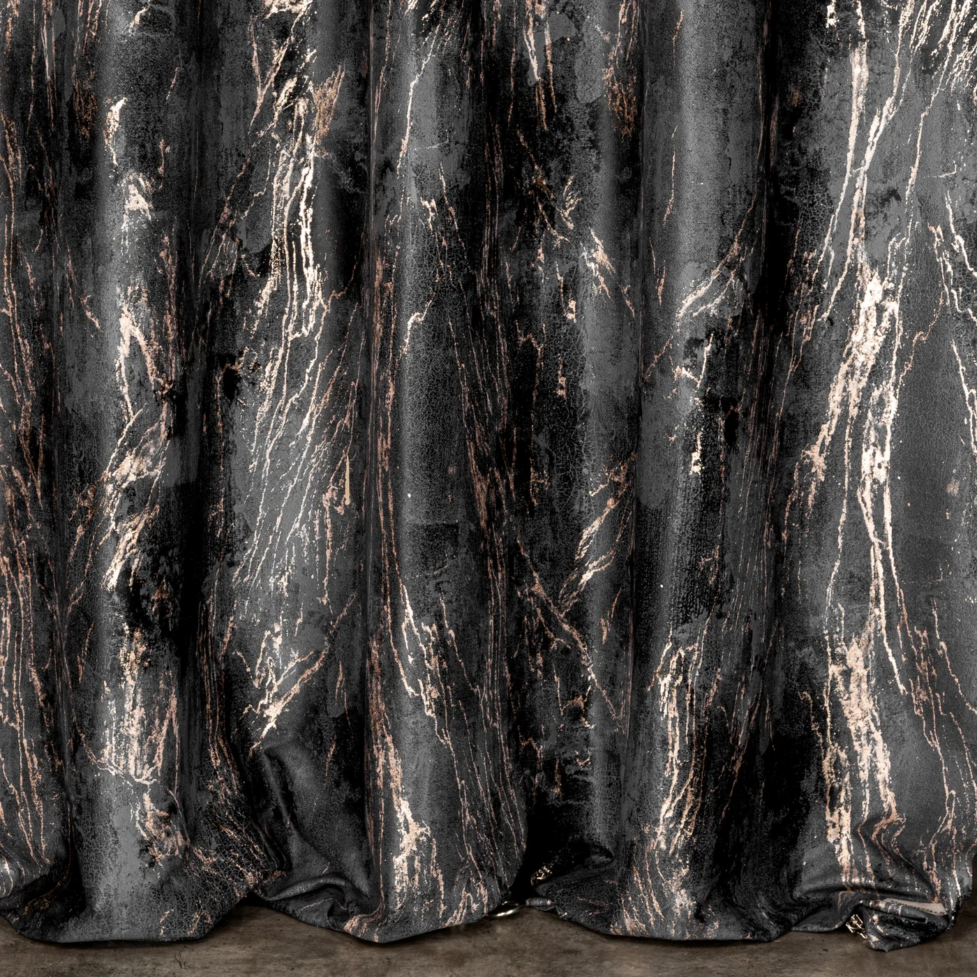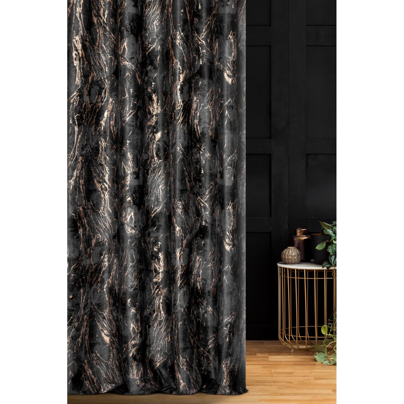 Závěs Nadia Elegant, hebký velvet v černé barvě, mramorovaný zlatavý potisk