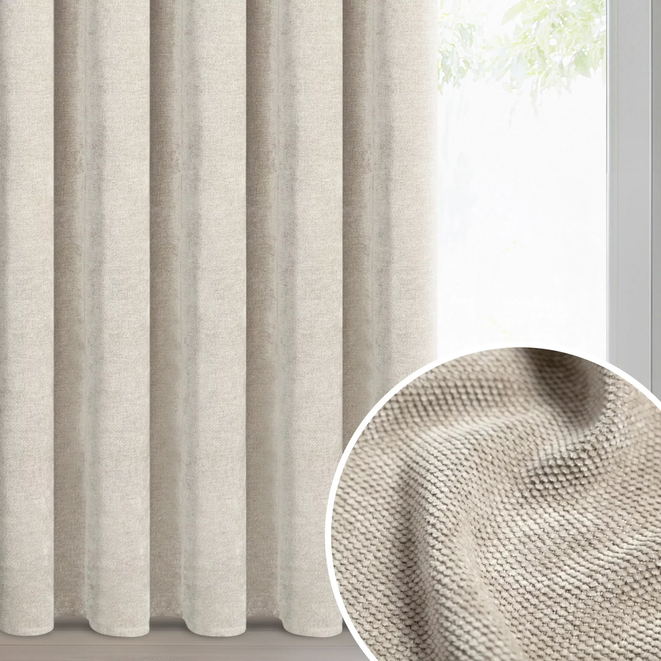 Závěs Neska, hebký nadýchaný šenil s výraznou strukturou, barva světle béžová melanž