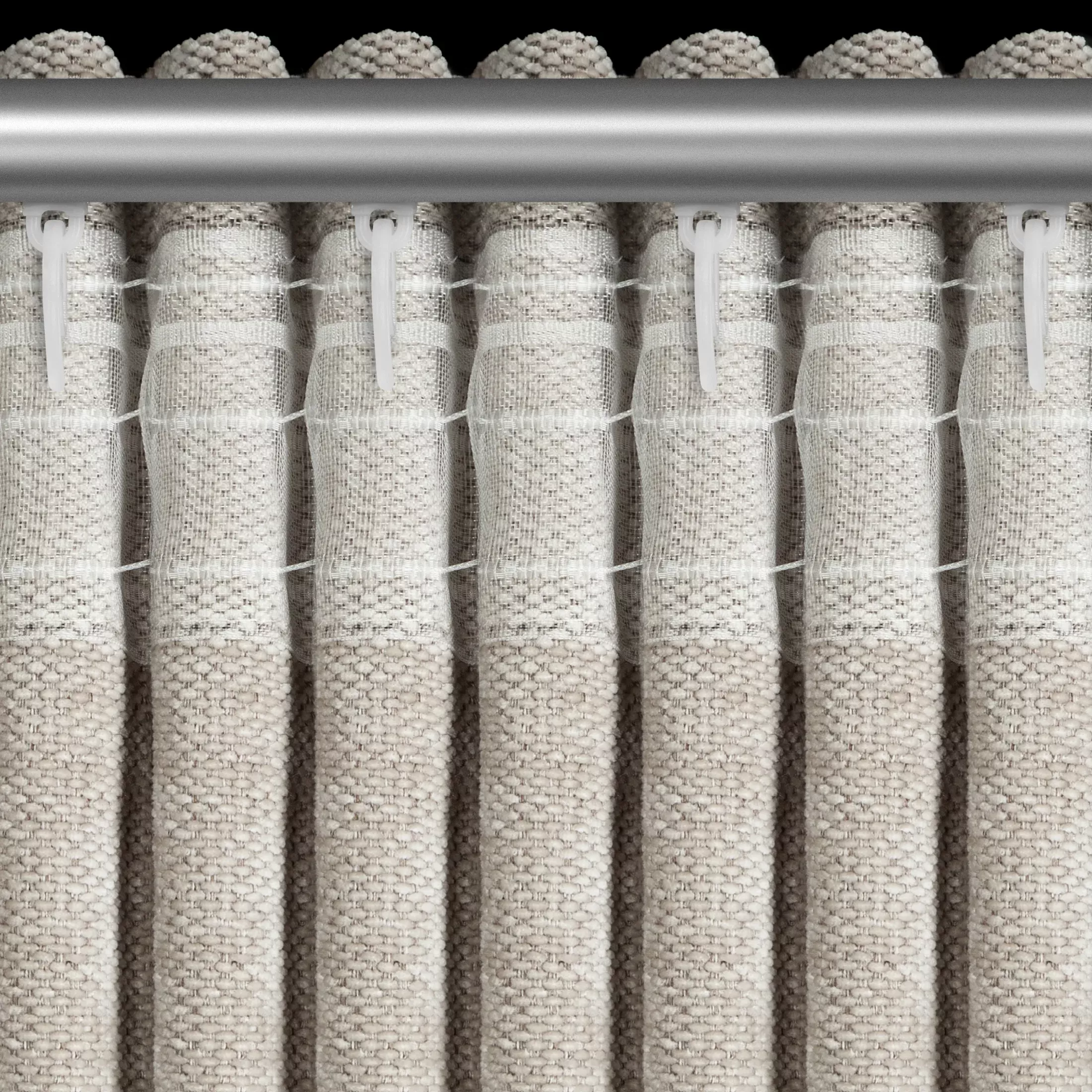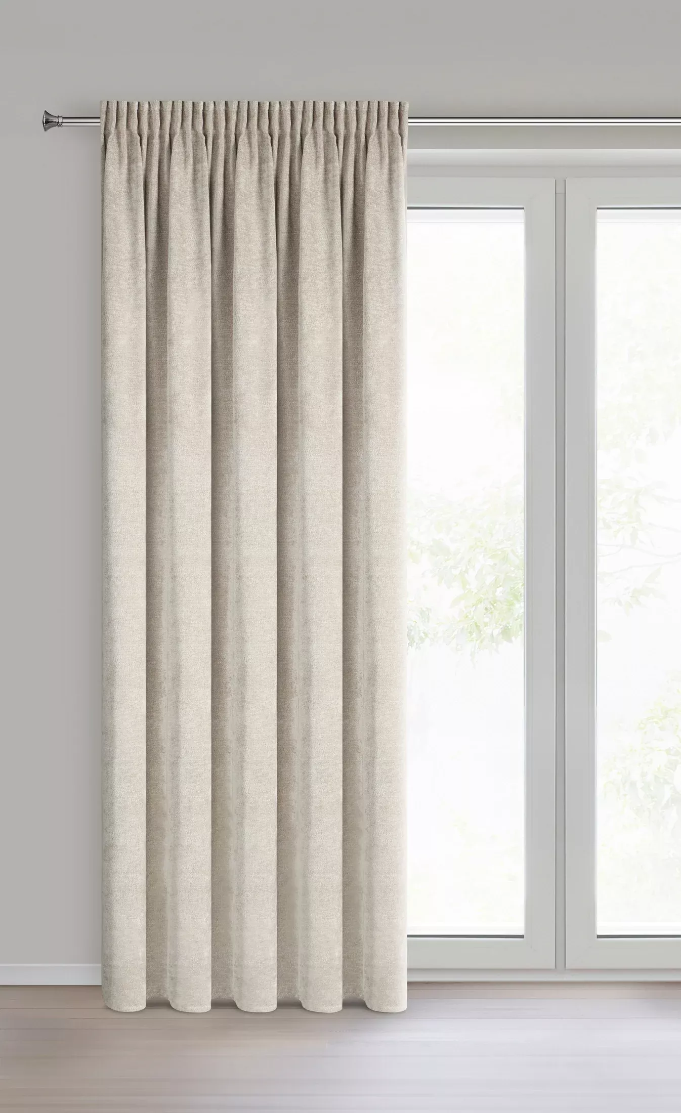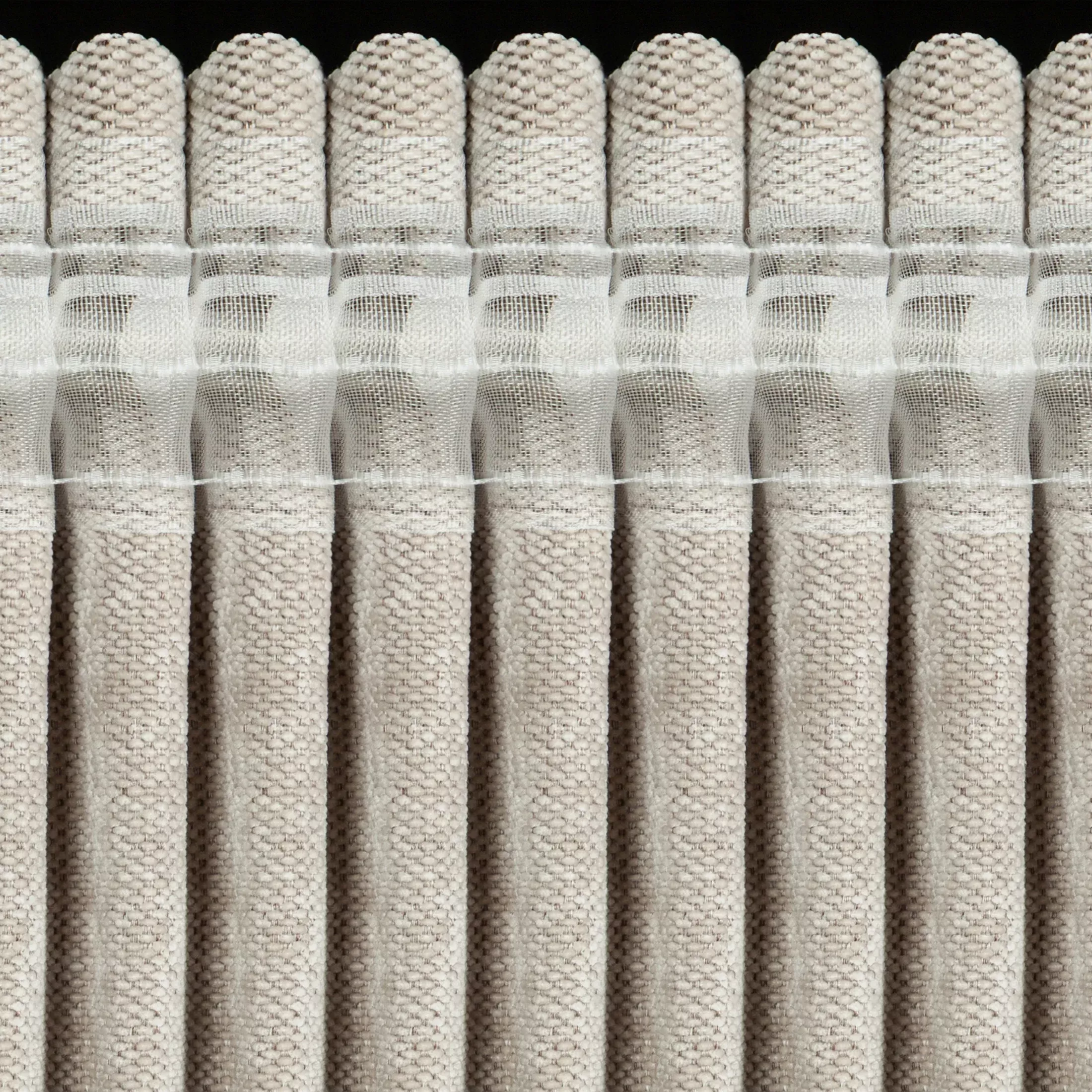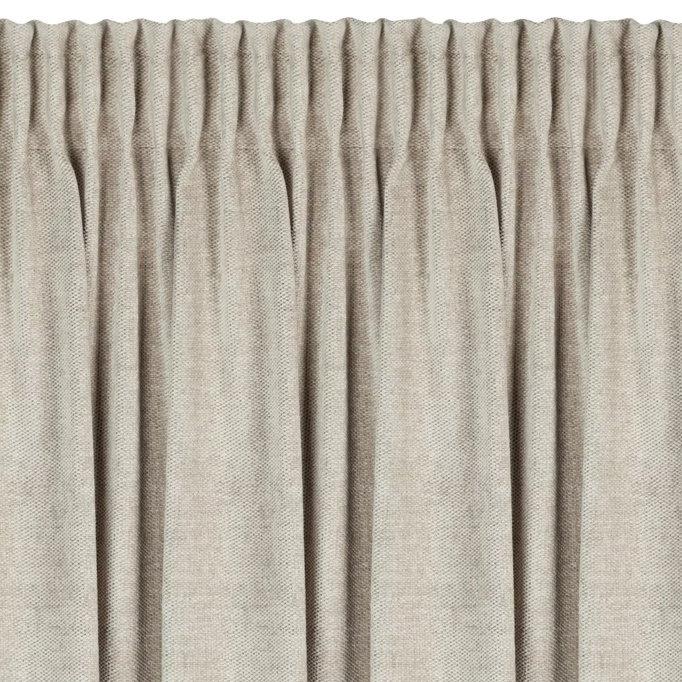 Závěs Neska, hebký strukturovaný šenil, světle béžová melanž, řasící páska, tunýlek, velikost 140x270cm, možnost zkrácení