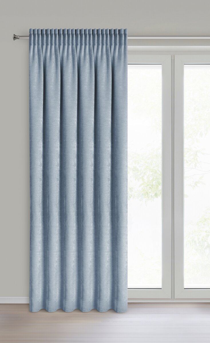 Závěs z kolekce Nilo, hebký a příjemný šenil působí mimořádně útulně, barva modrá blankytná, jemná melanž
