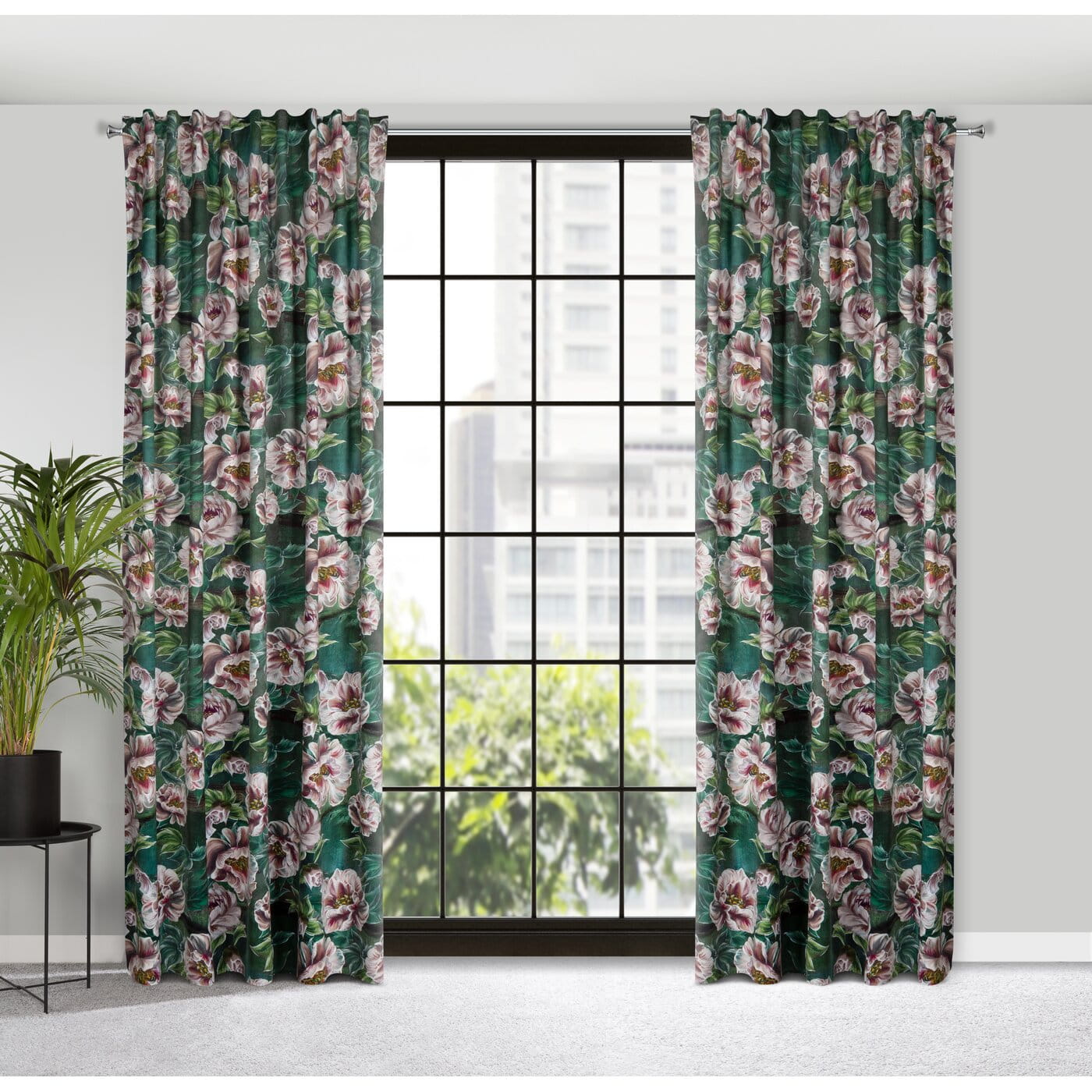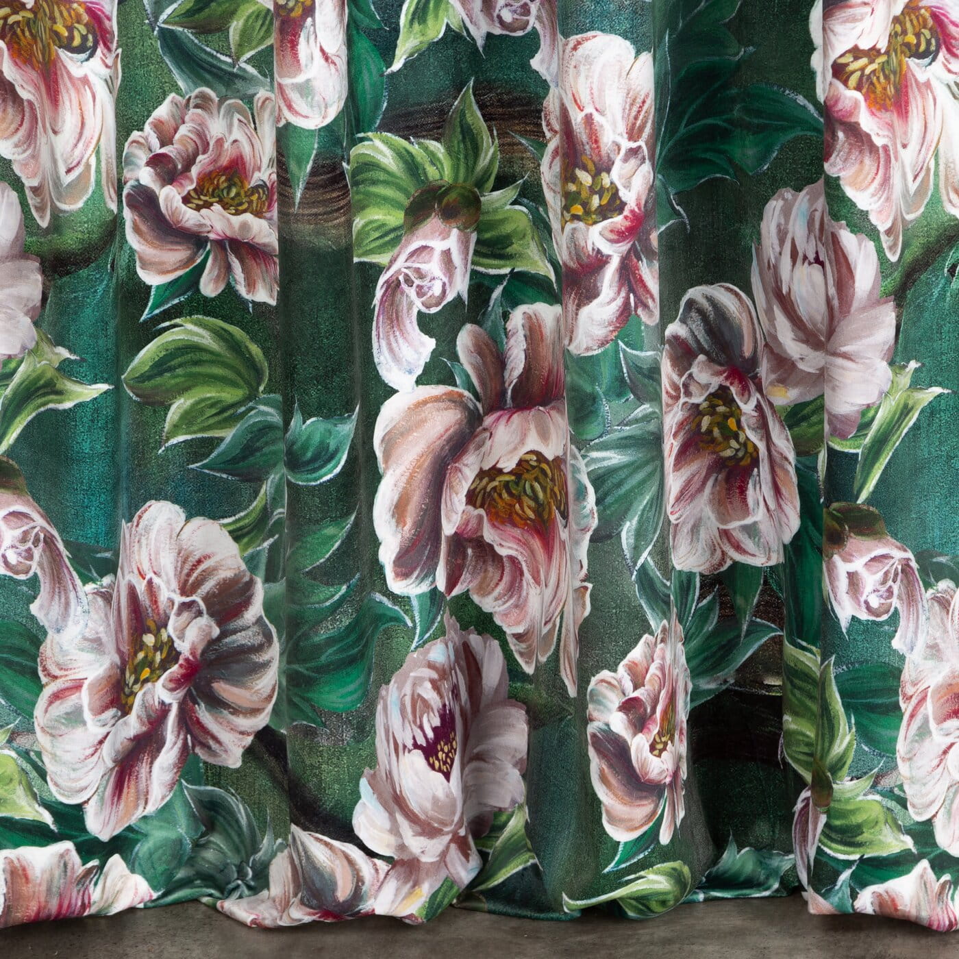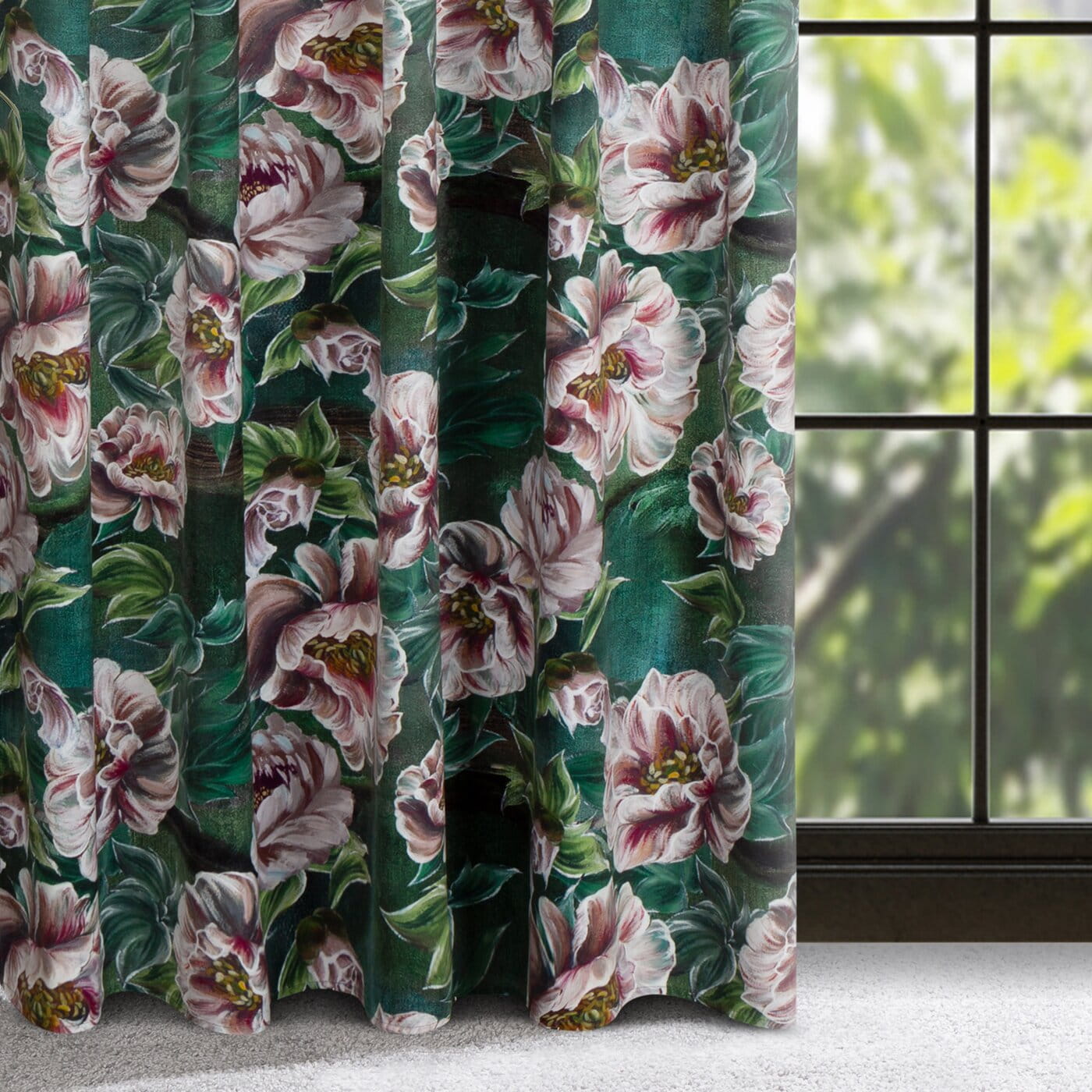 Závěs Palmera, velvet, sytý květový potisk s 3D efektem