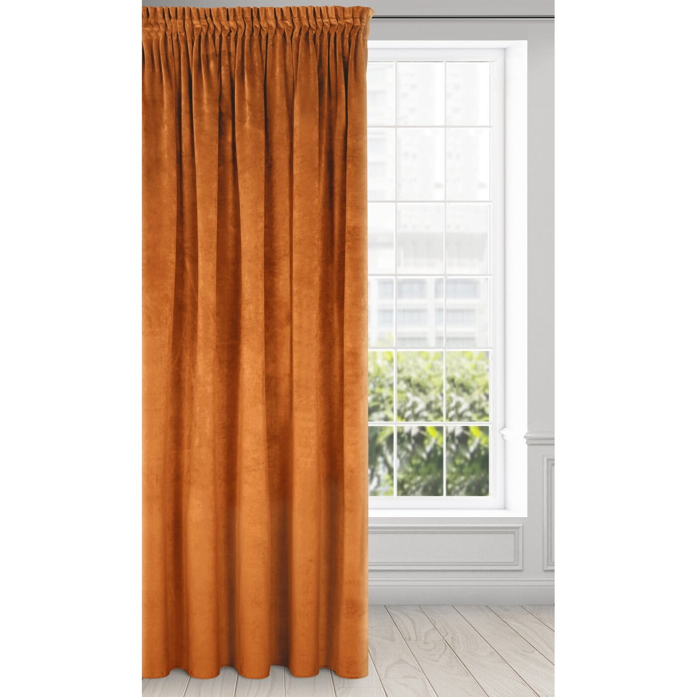 Závěs Ria elegant, velvet v rezavé barvě, řasící páska, velikost 140x270cm, lze zkrátit