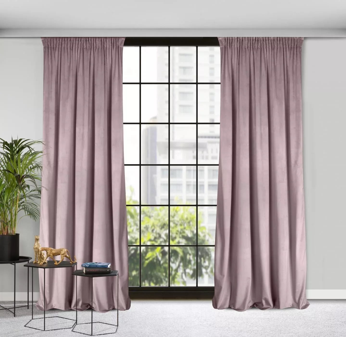 Závěs Rosa, velvet, pudrová růžová barva, řasící páska nebo tunýlek, 140x270cm, výšku lze zkrátit