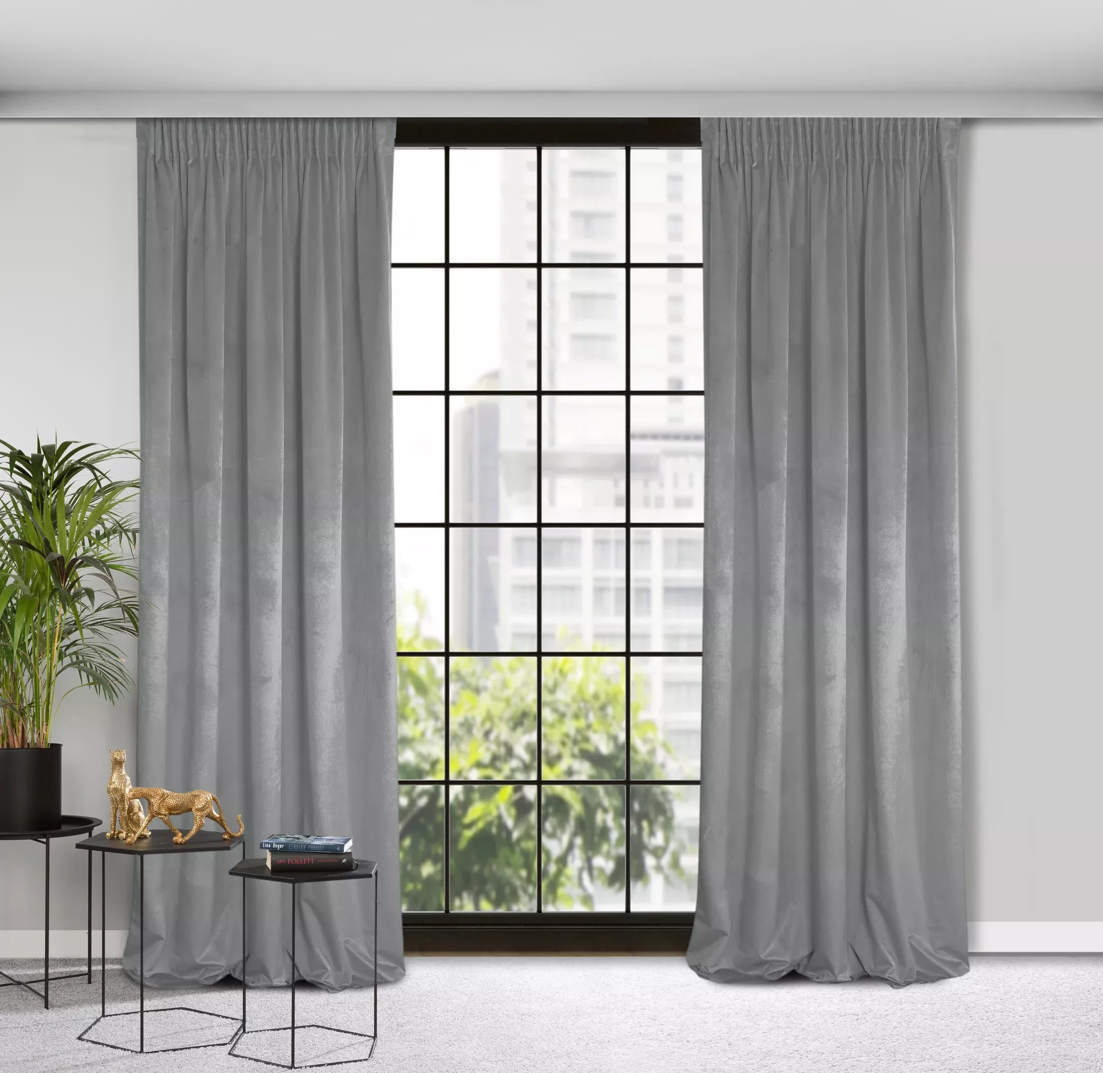 Závěs Rosa, velvet, šedostříbrná barva, řasící páska nebo tunýlek, 140x270cm, výšku lze zkrátit