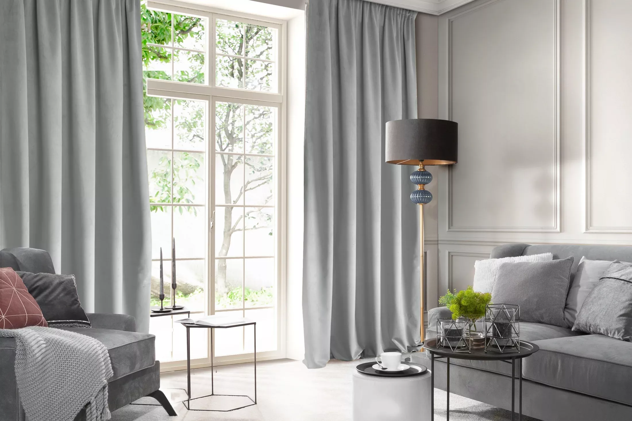 Závěs řady Rosa, velvet-samet s jemným naznačeným leskem, šedostříbrná barva barva