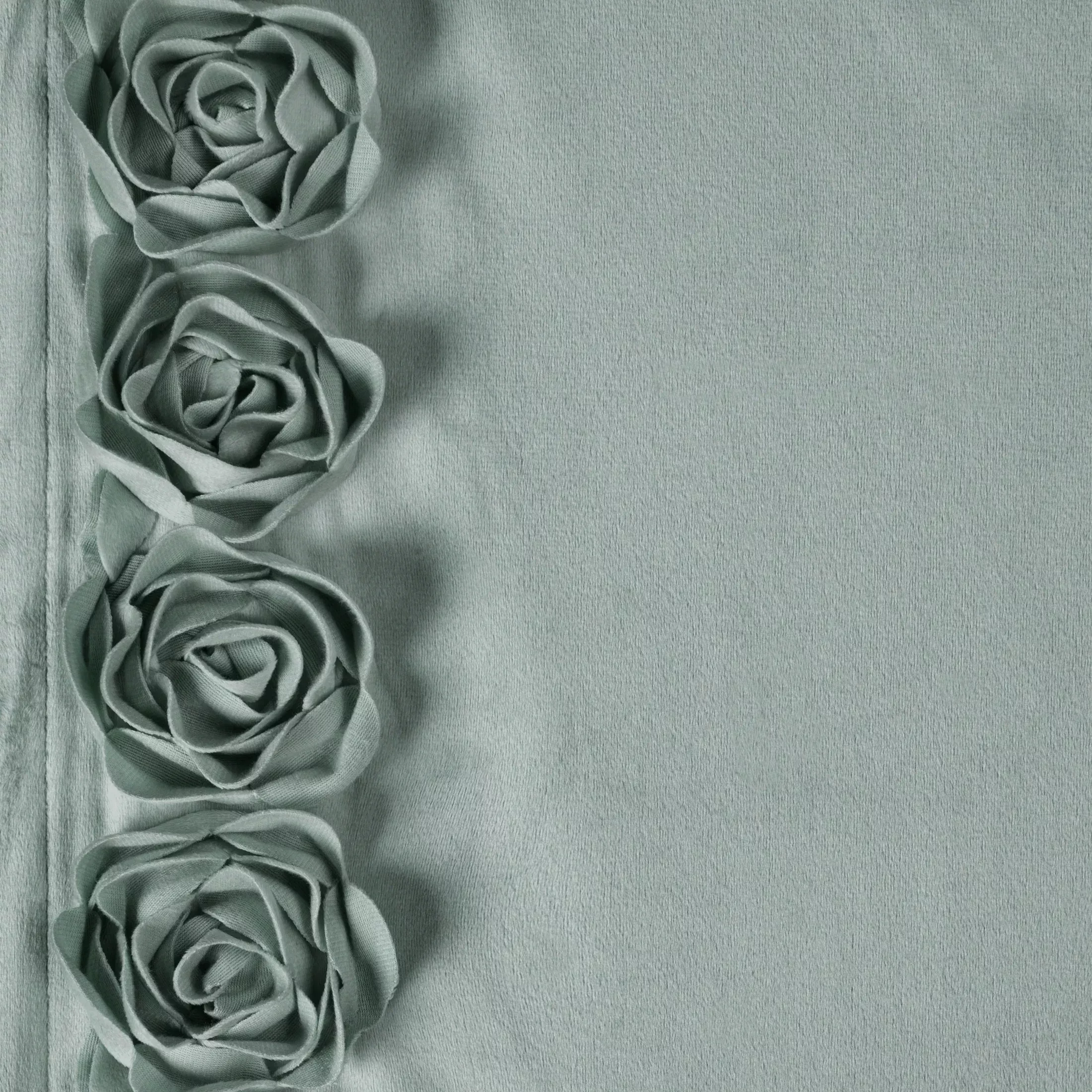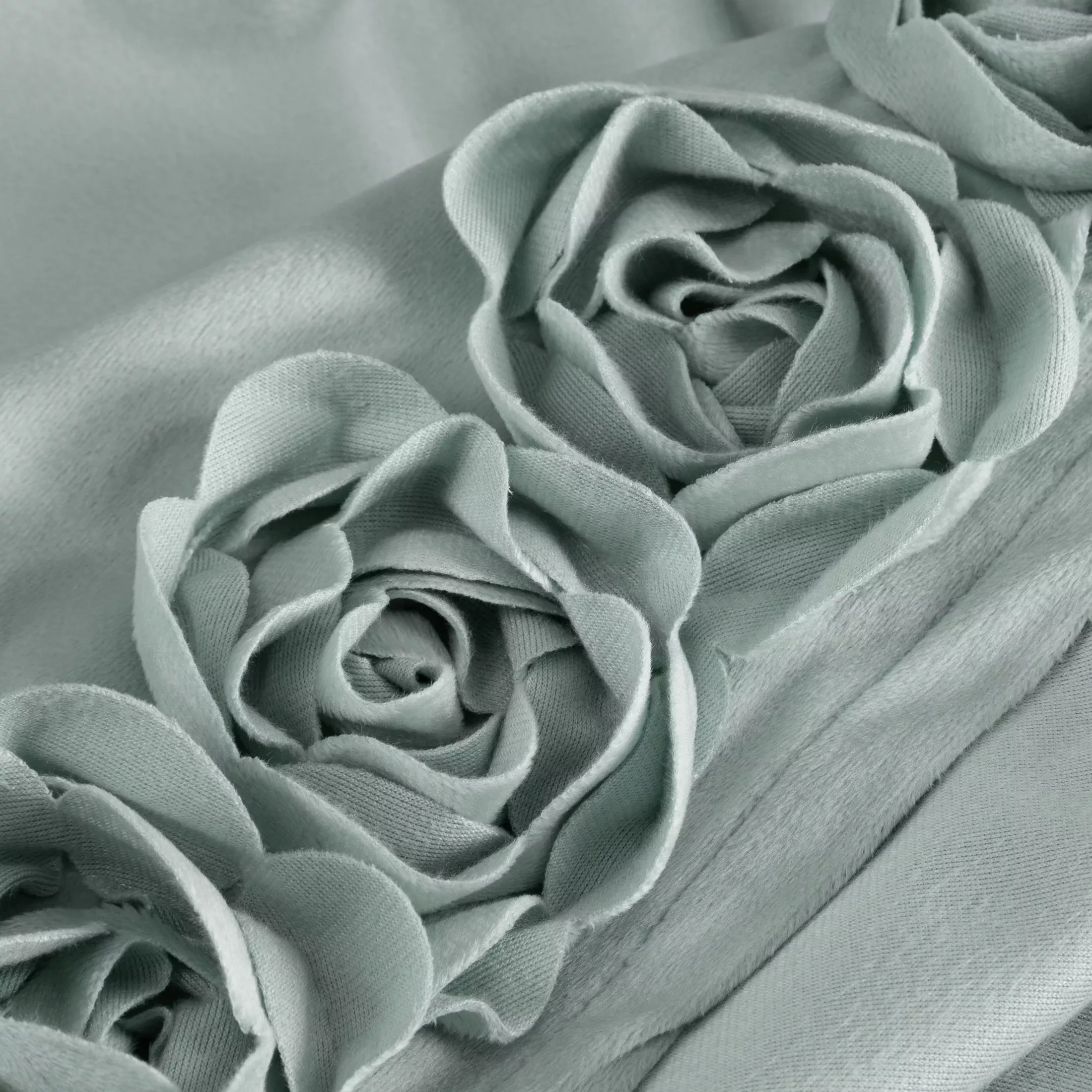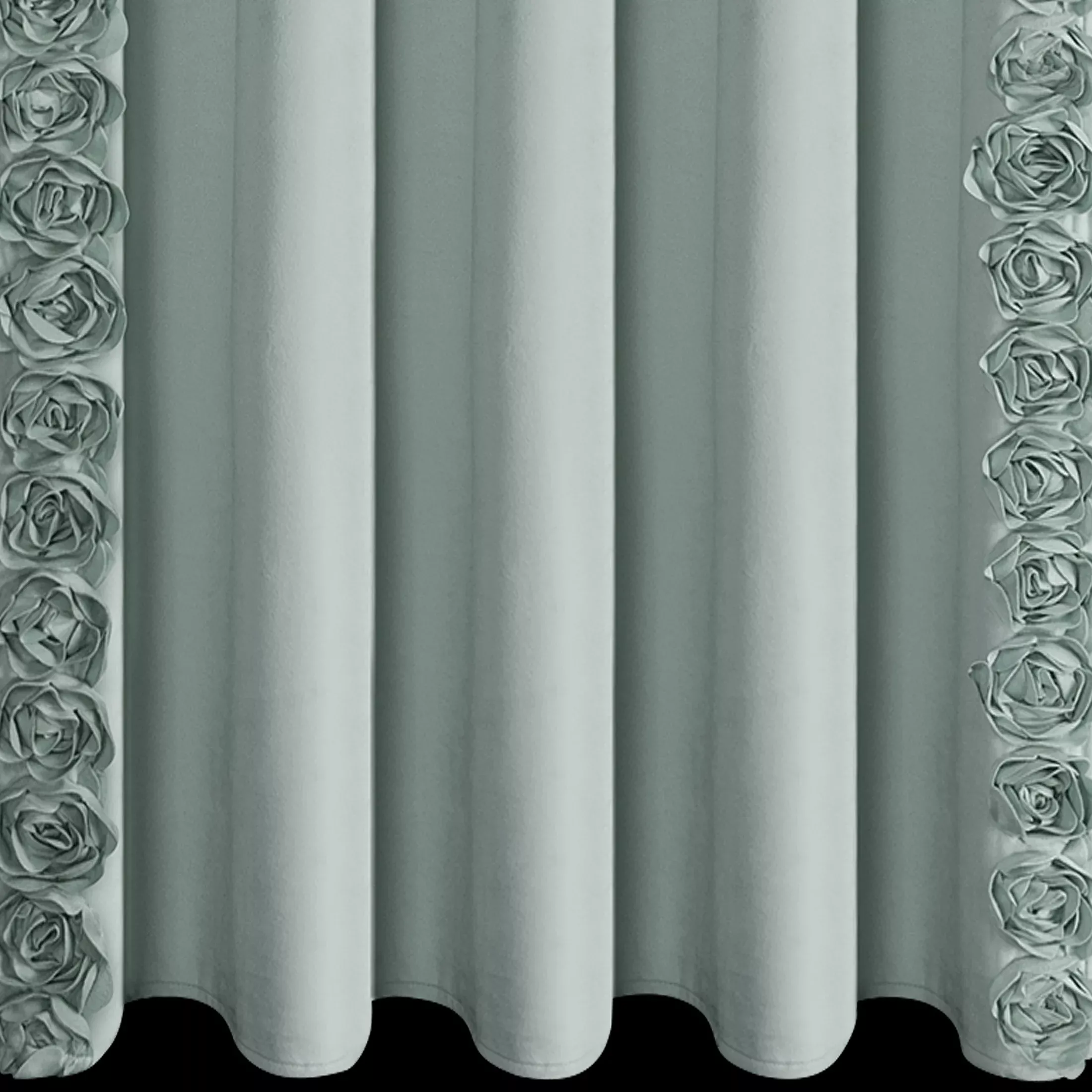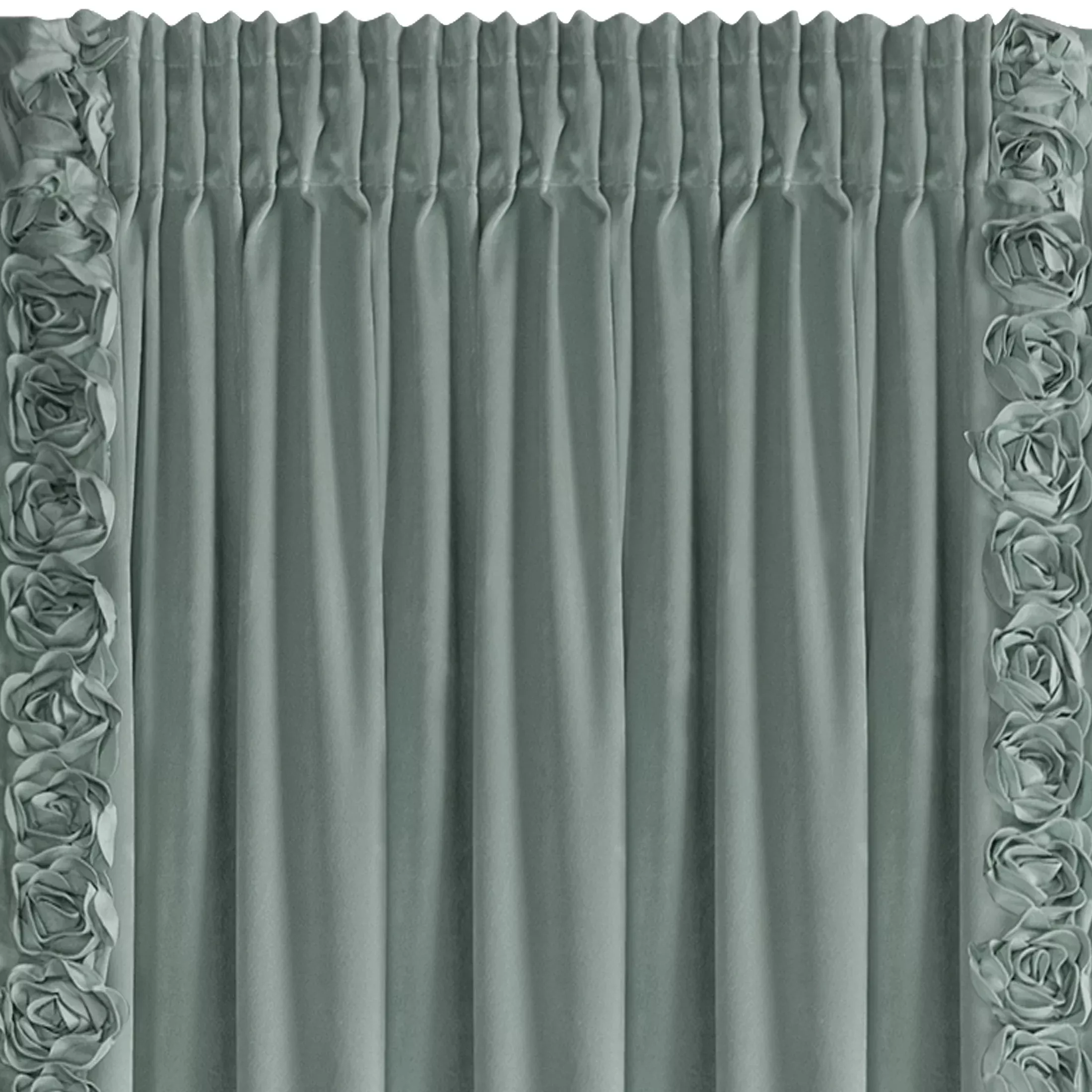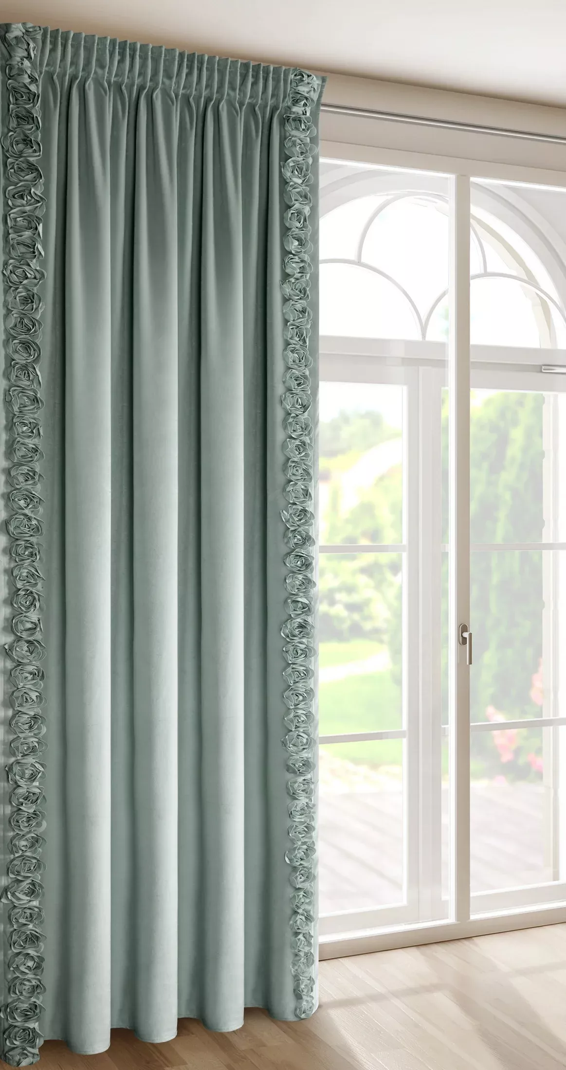 Designérský závěs Roses by Eva Minge, hebký velvet - samet s 3D aplikací růžičkami po bocích, barva mátová, jemný lesk