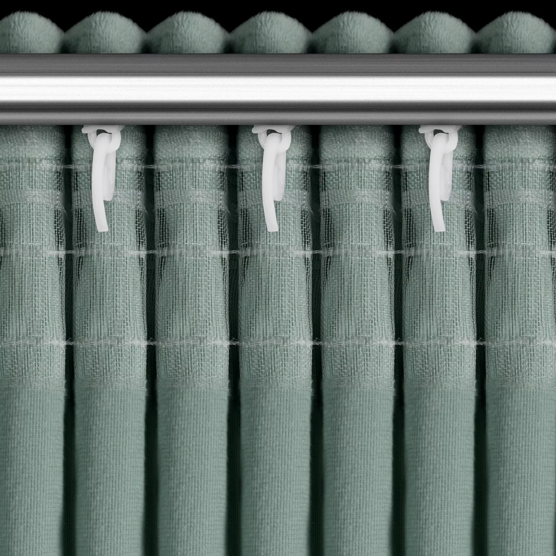 | Využitelná šířka garnýže | pro zavěšení na řasící pásku lze využít celou šíři garnýže - včetně bočních částí od držáků garnýže po koncovky, pro zavěšení do tunýlku za páskou lze vždy využít pouze část garnýže mezi jeho držáky |