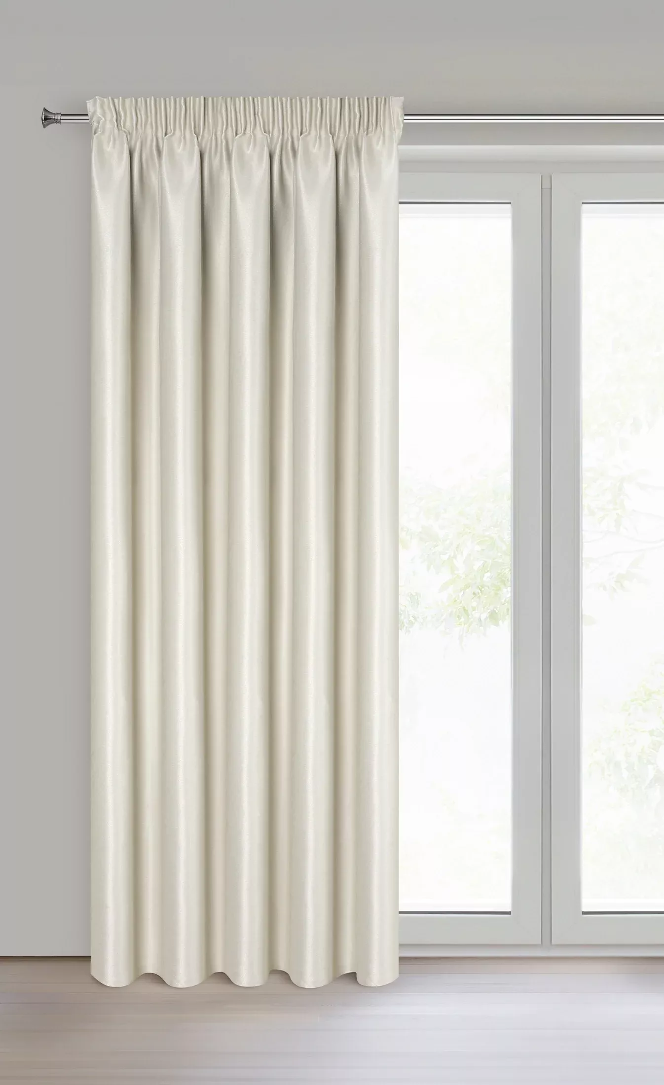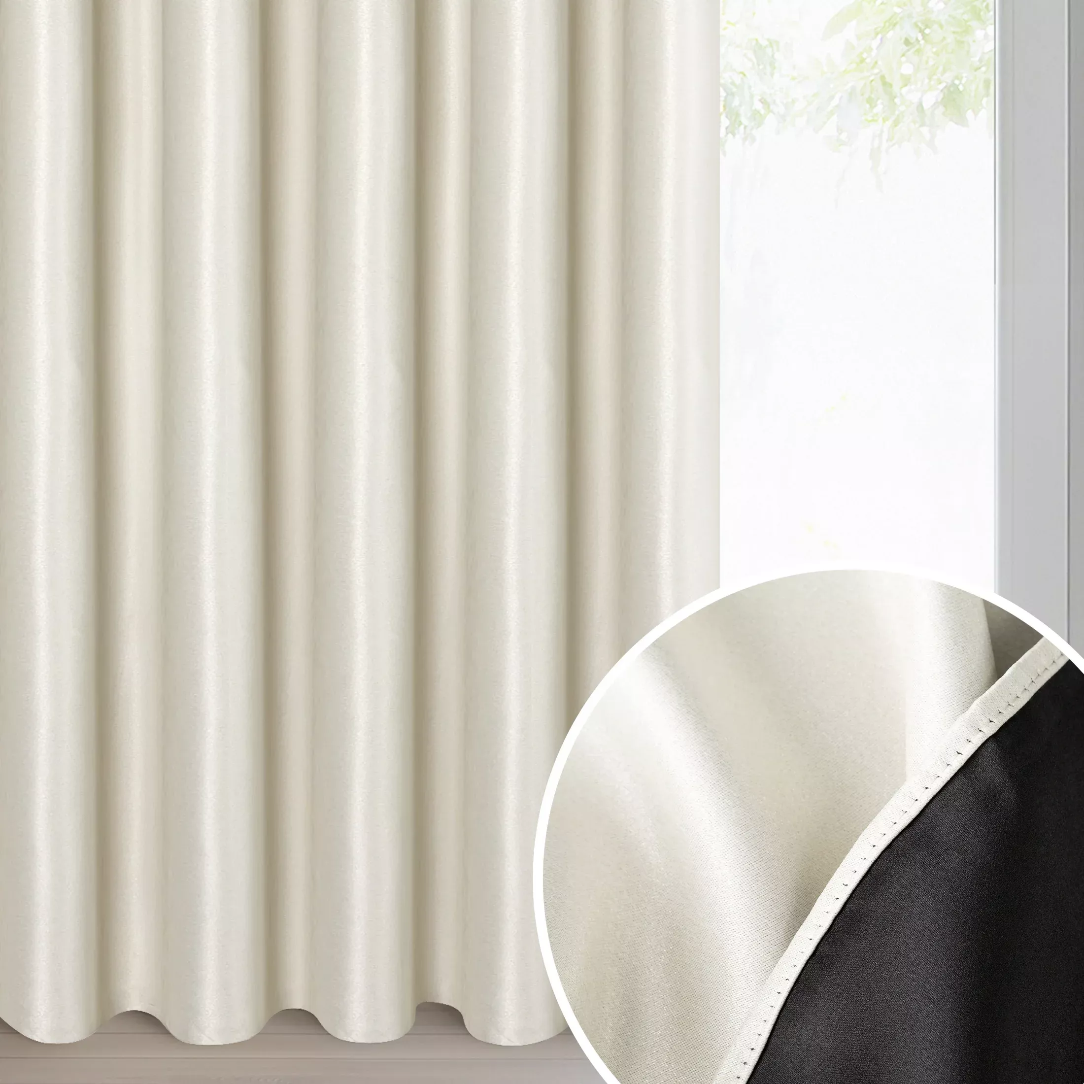 Závěs Selina, látka s lesklou nitkou, barva krémová, podšití pro vysoký stupeň zatemnění, 140x270cm, řasící páska, lze zkrátit