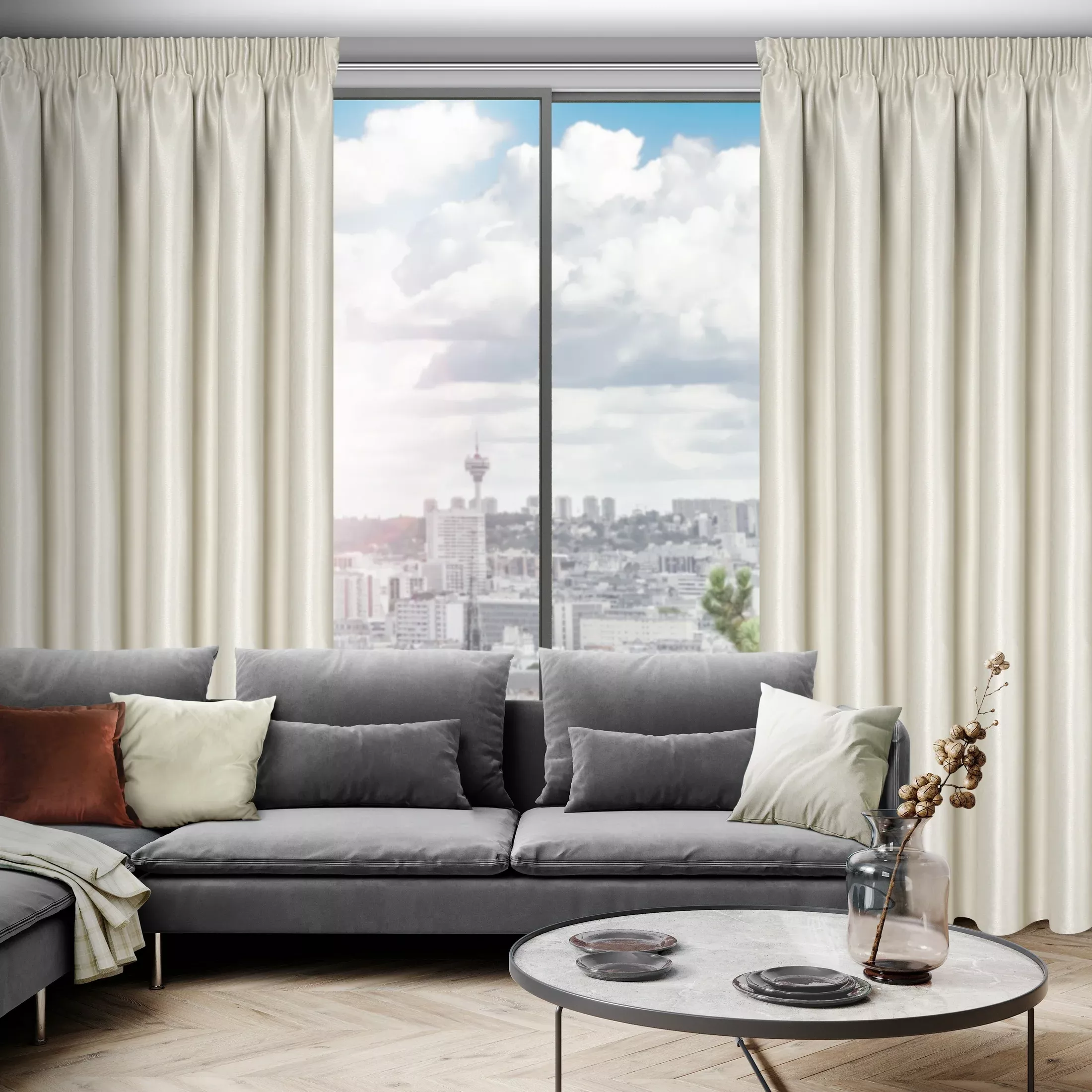 Vysoká gramáž 300g/m2, podšití tmavou látkou pro vysoký stupeň zatemnění