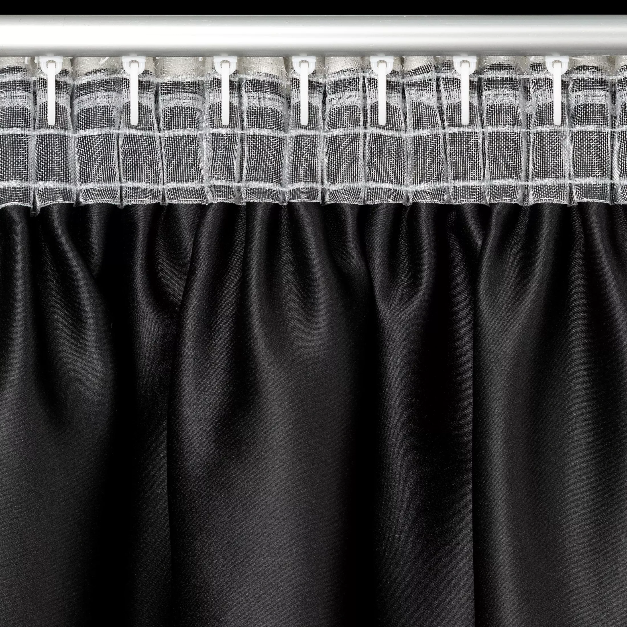 | Využitelná šířka garnýže | pro zavěšení na řasící pásku lze využít celou šíři garnýže - včetně bočních částí od držáků garnýže po koncovky, pro zavěšení do tunýlku za páskou lze vždy využít pouze část garnýže mezi jeho držáky |