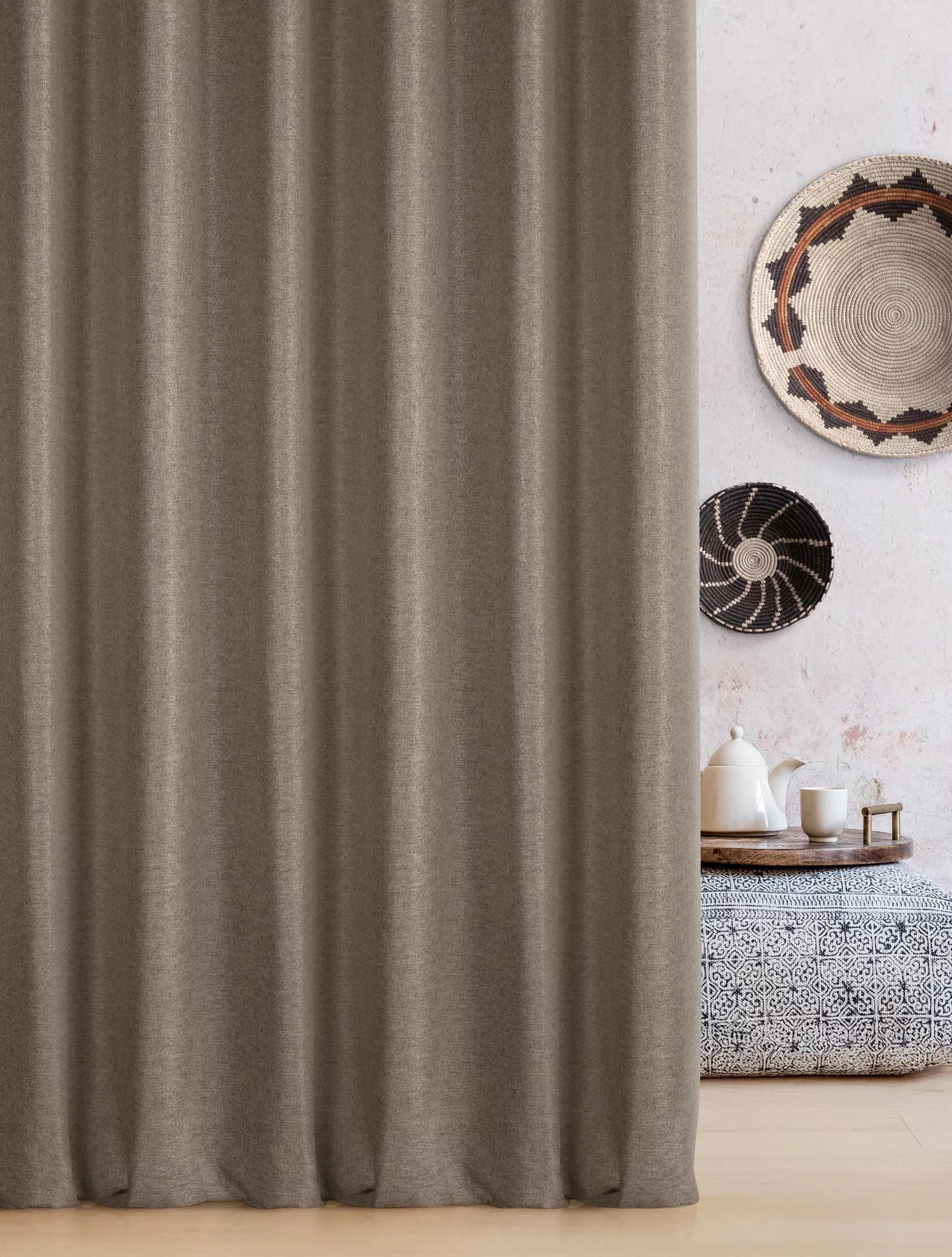 Závěs Style2 Eco, viditelný ozdobný splot, barva hnědá cappuccino, jemná melanž, šití na míru