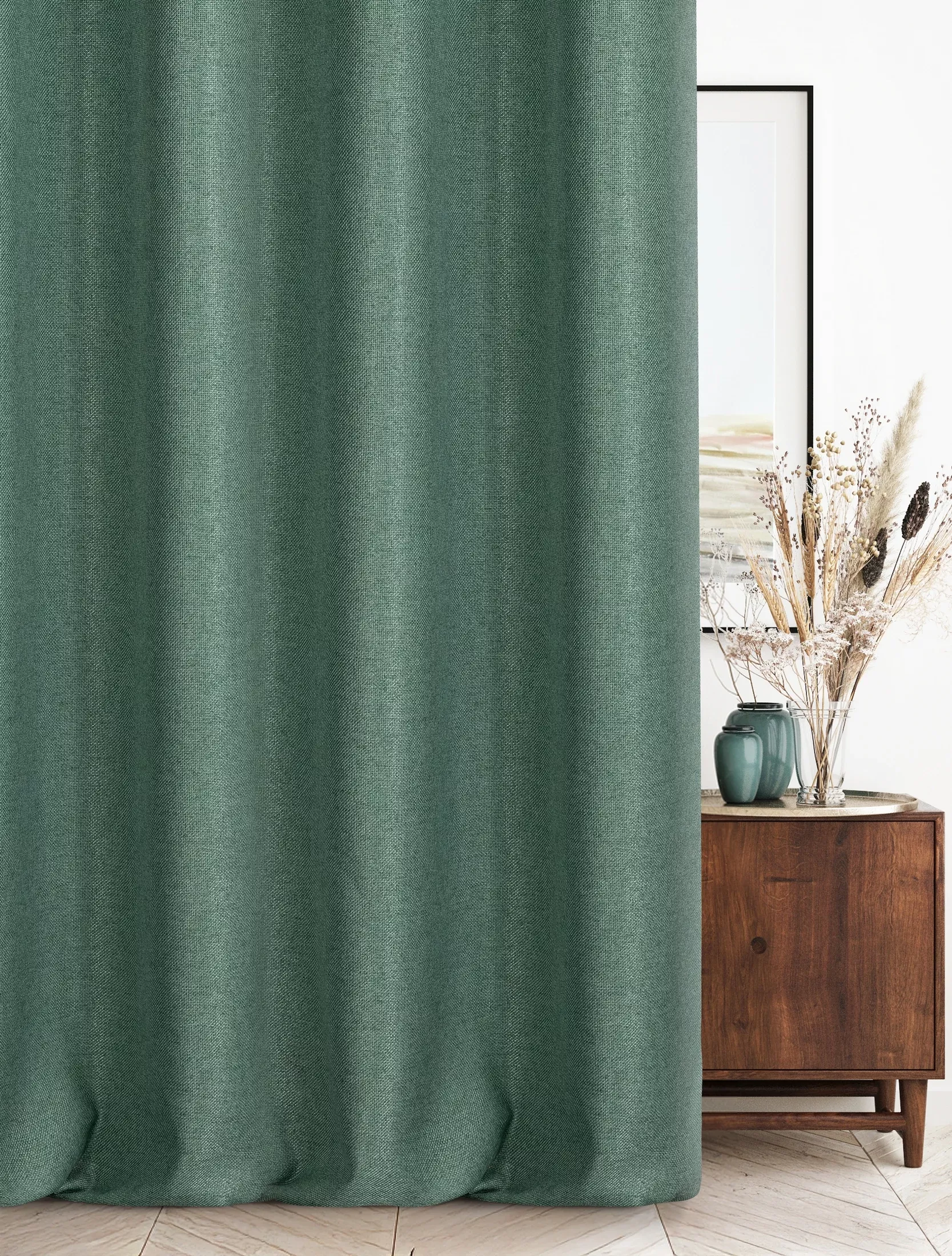 Závěs kolekce Style2, přírodní viditelný ozdobný splot, barva tmavě mátová, jemná melanž